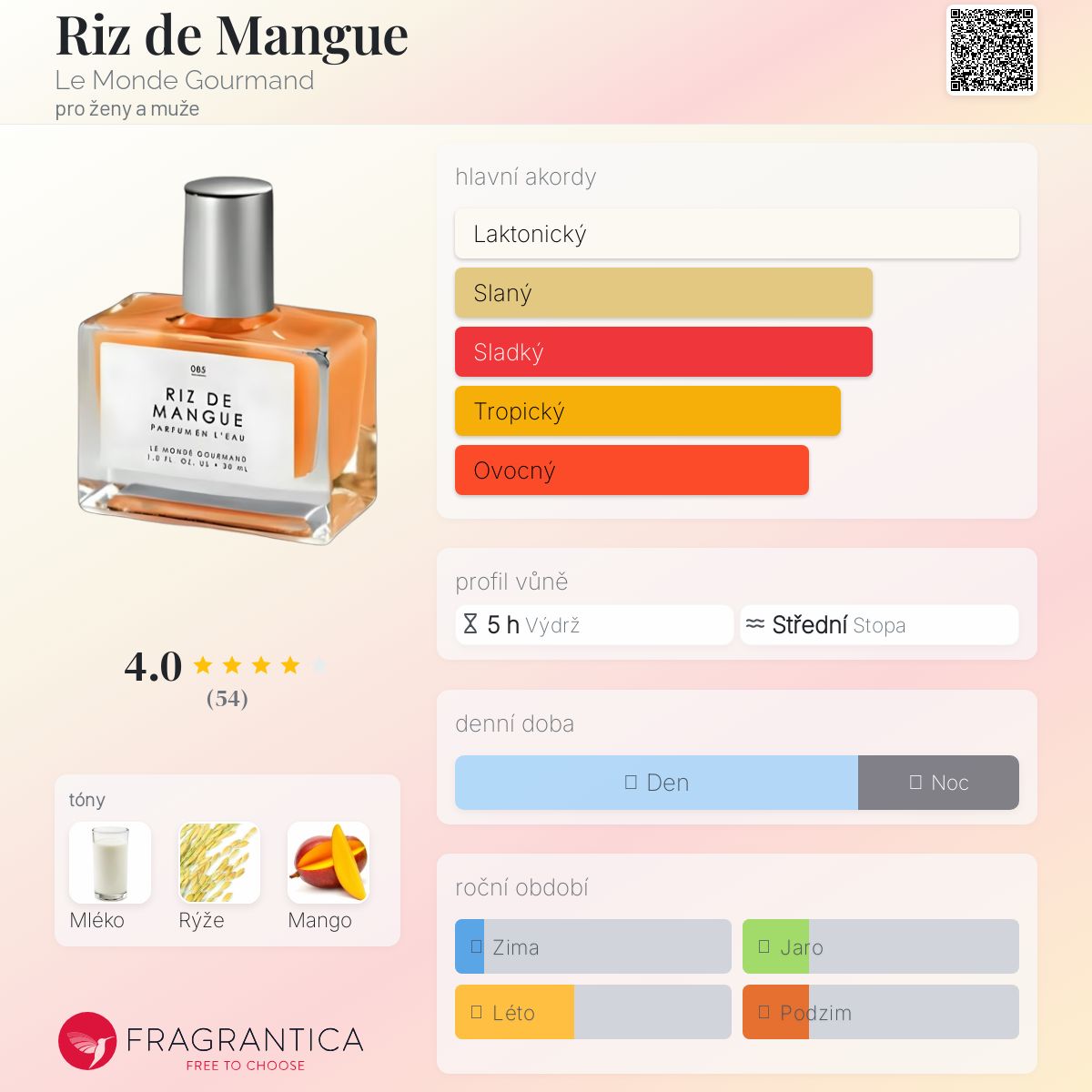 Riz de Mangue podle Le Monde Gourmand je vůně pro ženy a muže. Toto je nová vůně. Riz de Mangue byl/a uveden/a v roce 2025.