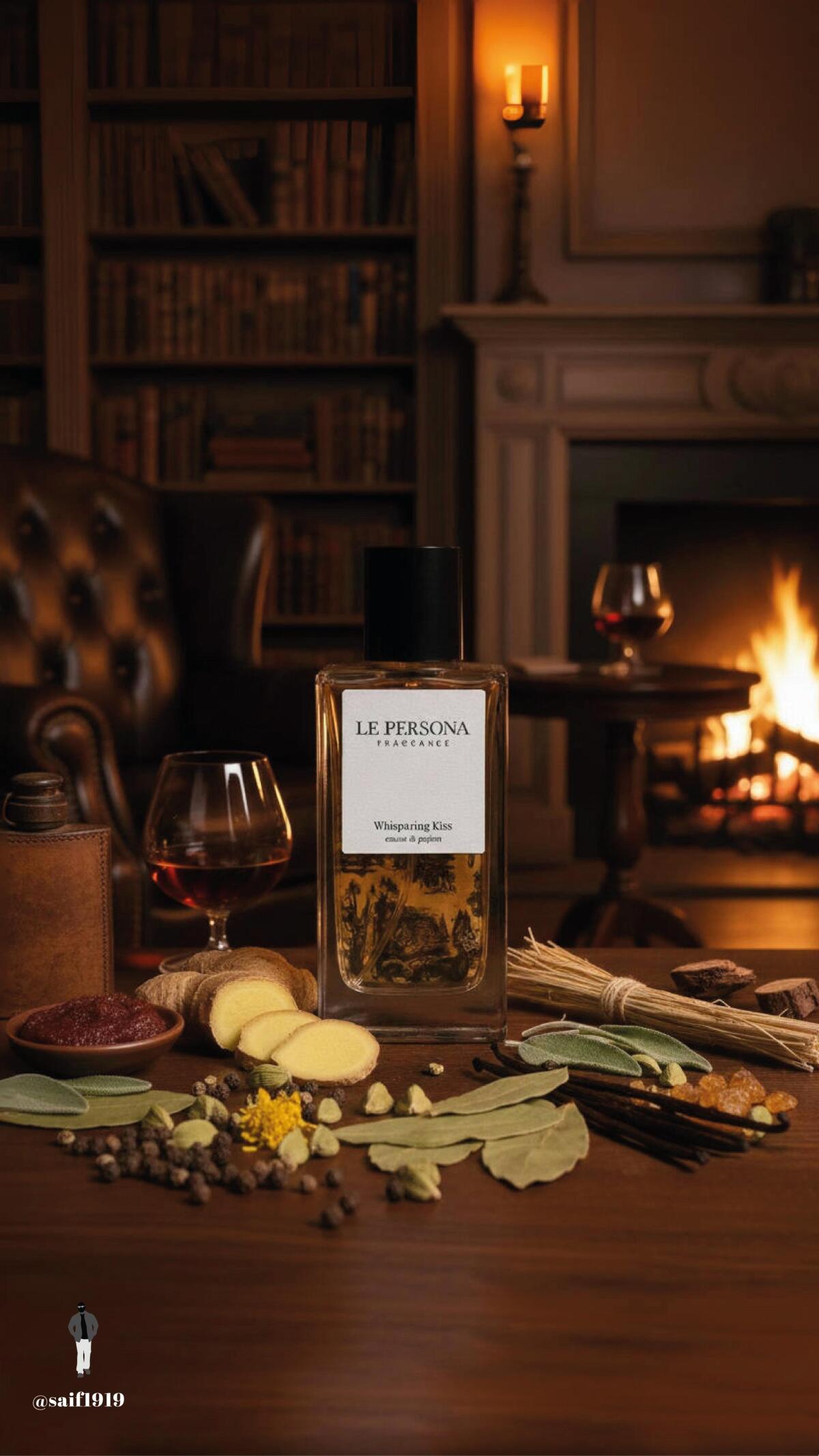 Whispering Kiss podle Le Persona je Orientální Spicy vůně pro ženy a muže. Toto je nová vůně. Whispering Kiss byl/a uveden/a v roce 2025. "Nosem" za touto vůní je Ilias Ermenidis. Vrchní tóny jsou Kardamom, Slaměnka, Pepř a Zázvor; střední tóny jsouPasta z červených fazolí, Koňak, Rum, Světlý tabák a Šalvěj ; základní tóny jsou Vanilka, Jantar (ambra), Dřevité tóny, Pačuli a Vetiver.