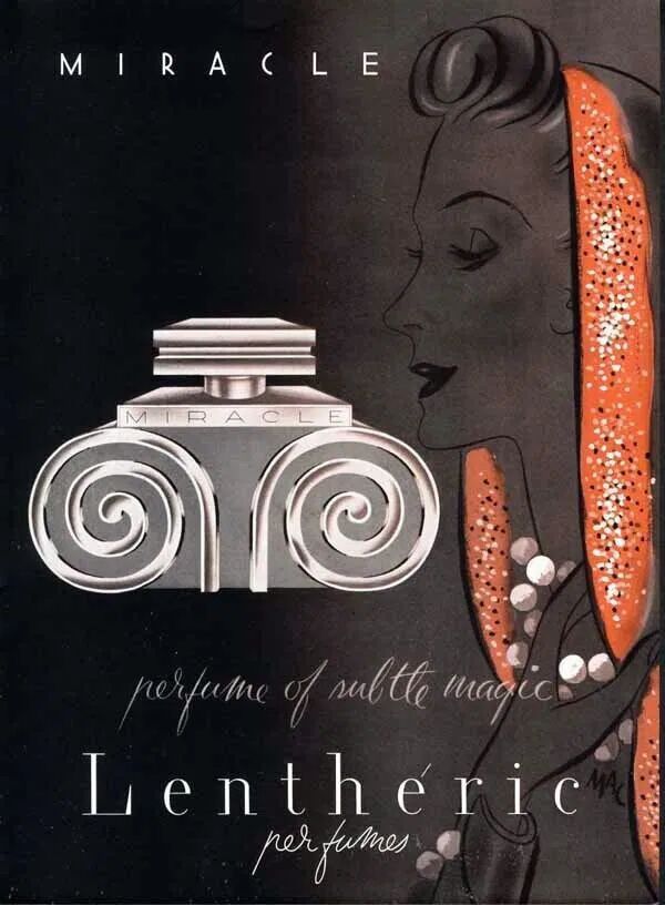 Miracle podle Lentheric je Chypre Floral vůně pro ženy. Miracle byl/a uveden/a v roce 1924. Vrchní tóny jsou Karafiát, Koriandr, Bergamot, Jasmín, Sporýš, Yzop, Šeřík a Citrón; střední tóny jsouKarafiát, Levandule, Rozmarýn, Oregano, Kafr, Bazalka, Římský kmín, Lilie, Šalvěj a Kosatec ; základní tóny jsou Santalové dřevo, Pačuli, Vanilka, Dubový mech, Kůže, Cedr, Cibetka, Kosatec a Borovice.