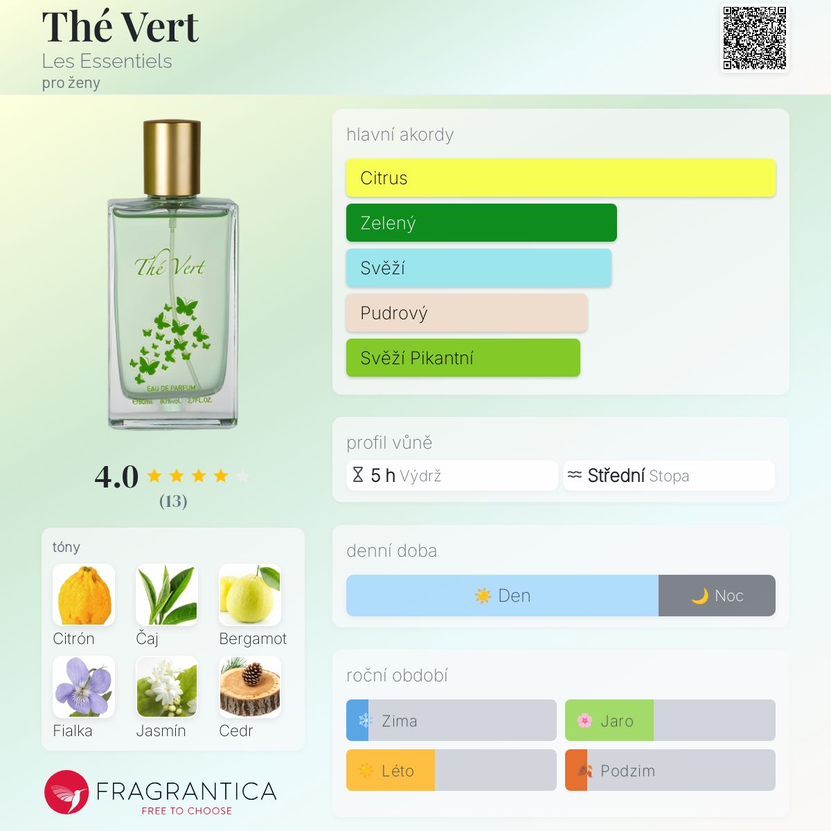 Hodnocení parfému 4.00 z 5 s 13 hlasy