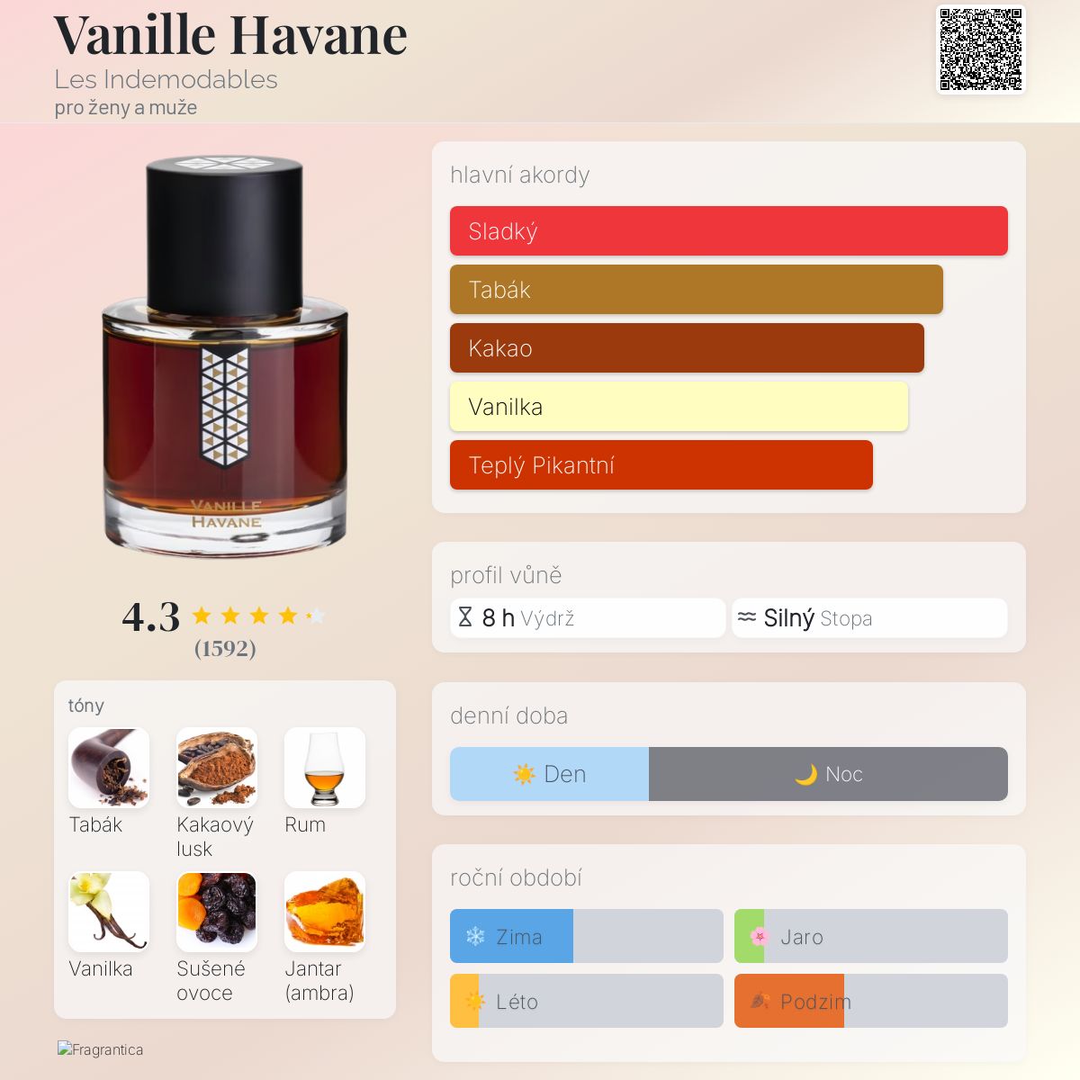 Tento parfém je přehlídkou kontrastů, které fungují. Silný tabák je vyvážen sladkým kakaem a rumem. Vanilka není cukrová, spíše se mísí s kořeněnými akordy a kůží, což dává elegantní hloubku. Takovou vanilku, jako je ve Vanille Havane, jsem ještě necítíl. Možná to je ono, proč mě to tak chytlo. Přidáním kožených tónů, se vůně stává hravě mužskou a zároveň unisex. Je to za mě spíš celé pánské. Je to komplexní, dobře vrstvená vůně, která baví s každou uplynulou hodinou po aplikaci parfému na sebe, na kůži nebo na oblečení.