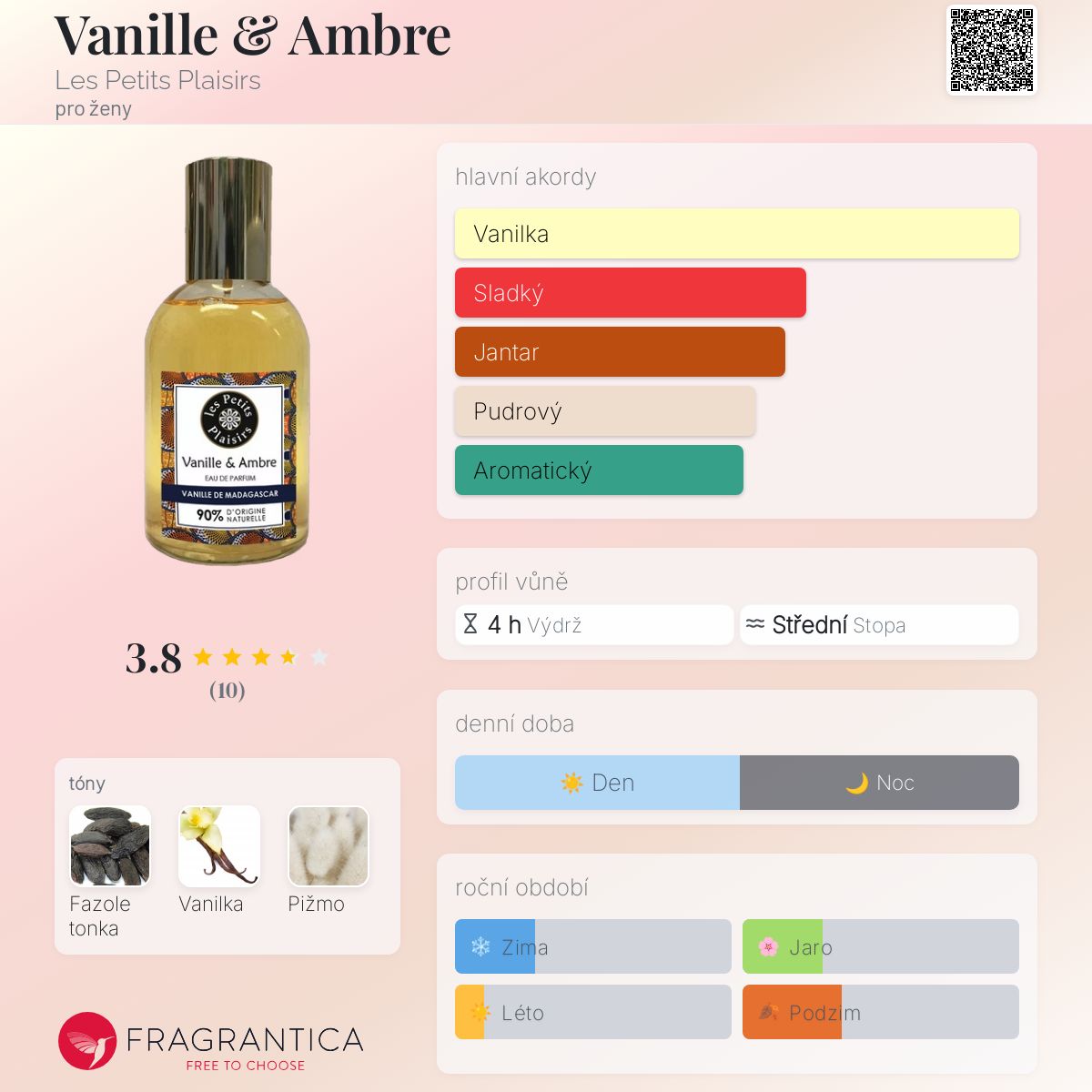 Vanille & Ambre podle Les Petits Plaisirs je Orientální vůně pro ženy. Vanille & Ambre byl/a uveden/a v roce 2018. Vrchní tón je Fazole tonka ; střední tón jePižmo ; základní tón je Vanilka.