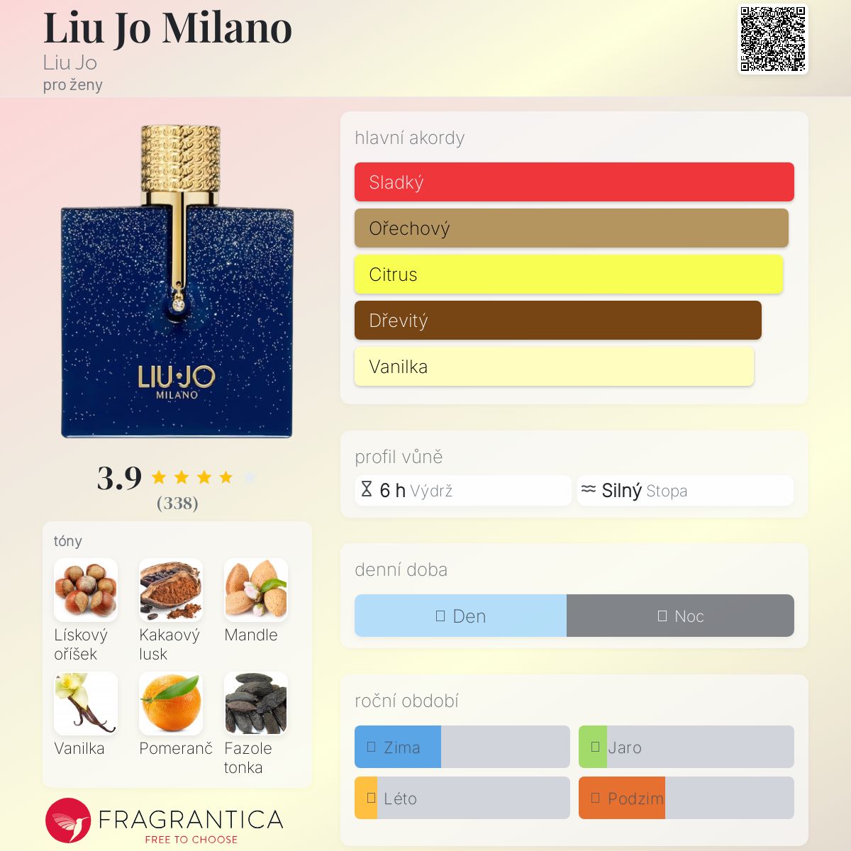Liu Jo Milano podle Liu Jo je Orientální Vanilla vůně pro ženy. Liu Jo Milano byl/a uveden/a v roce 2019. Vrchní tóny jsou Mandle, Pomeranč a Mandarinka; střední tóny jsouLískový oříšek, Kakao a Pomerančový květ ; základní tóny jsou Vanilka, Fazole tonka, Vetiver a Pačuli.