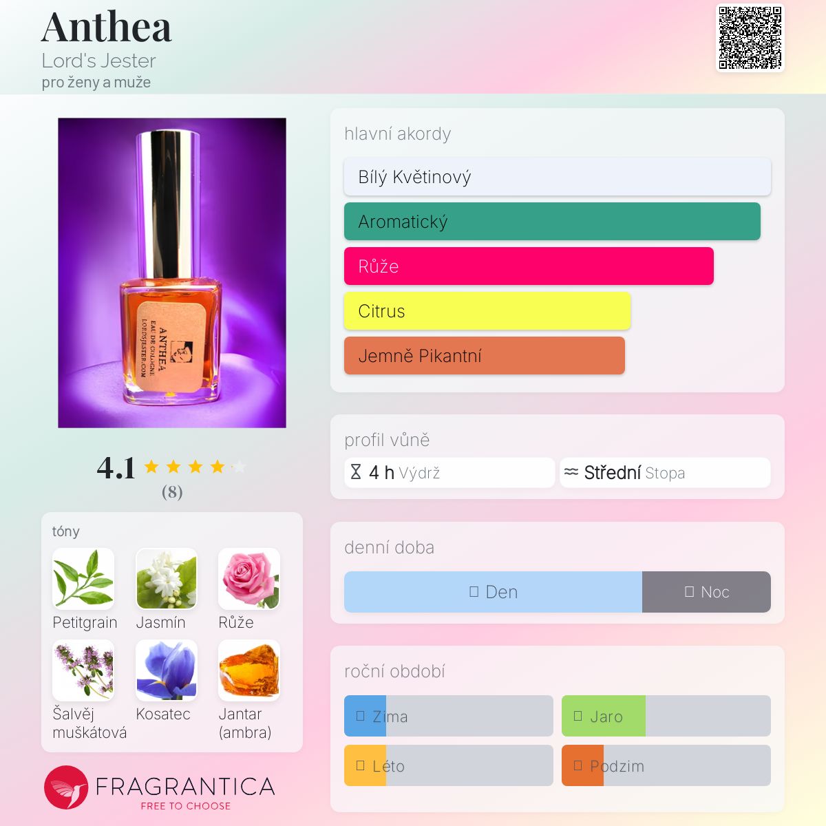 Anthea podle Lord's Jester je Floral vůně pro ženy a muže. Anthea byla spuštěna během 2000. "Nosem" za touto vůní je Adam Gottschalk. Vrchní tón je Petitgrain ; střední tóny jsouJasmín, Růže a Šalvěj muškátová ; základní tóny jsou Kosatec a Jantar (ambra).