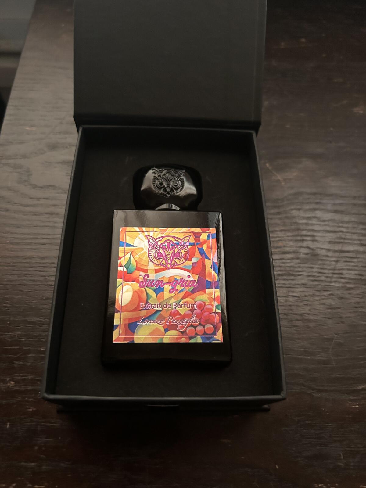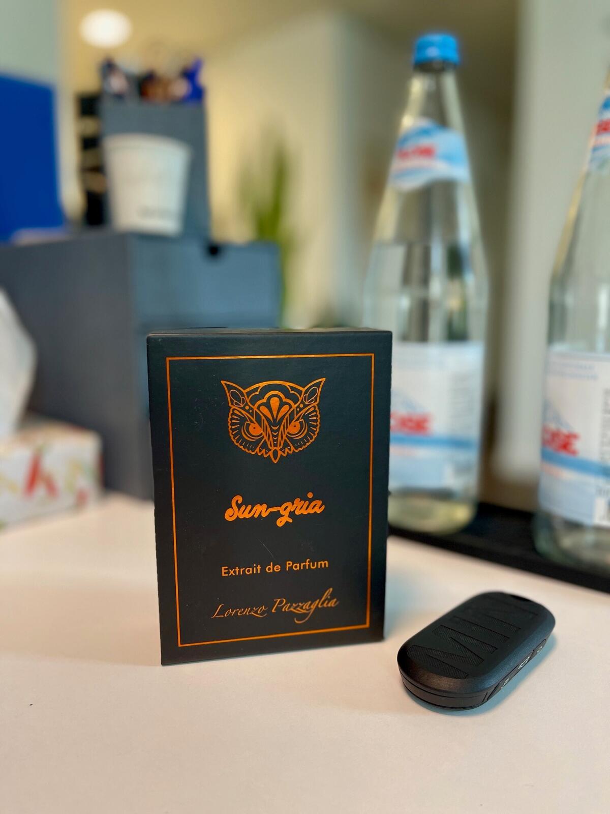 Sun-gria podle Lorenzo Pazzaglia je Orientální Floral vůně pro ženy a muže. Toto je nová vůně. Sun-gria byl/a uveden/a v roce 2024. "Nosem" za touto vůní je Lorenzo Pazzaglia. Vrchní tóny jsou Krvavý pomeranč, Skořice, Mandarinka, Bergamot, Citrón, Zázvor, Růžový pepř, Hřebíček a Zelené tóny; střední tóny jsouHrozny, Červené víno, Maliny, Černý rybíz, Broskev, Jablko, Kardamom a Turecká růže ; základní tóny jsou Hnědý cukr, Vanilka, Vanilkový lusk, Fazole tonka, Jantar (ambra), Pižmo, Pačuli, Santalové dřevo, Benzoin, Cedr a Bříza.
