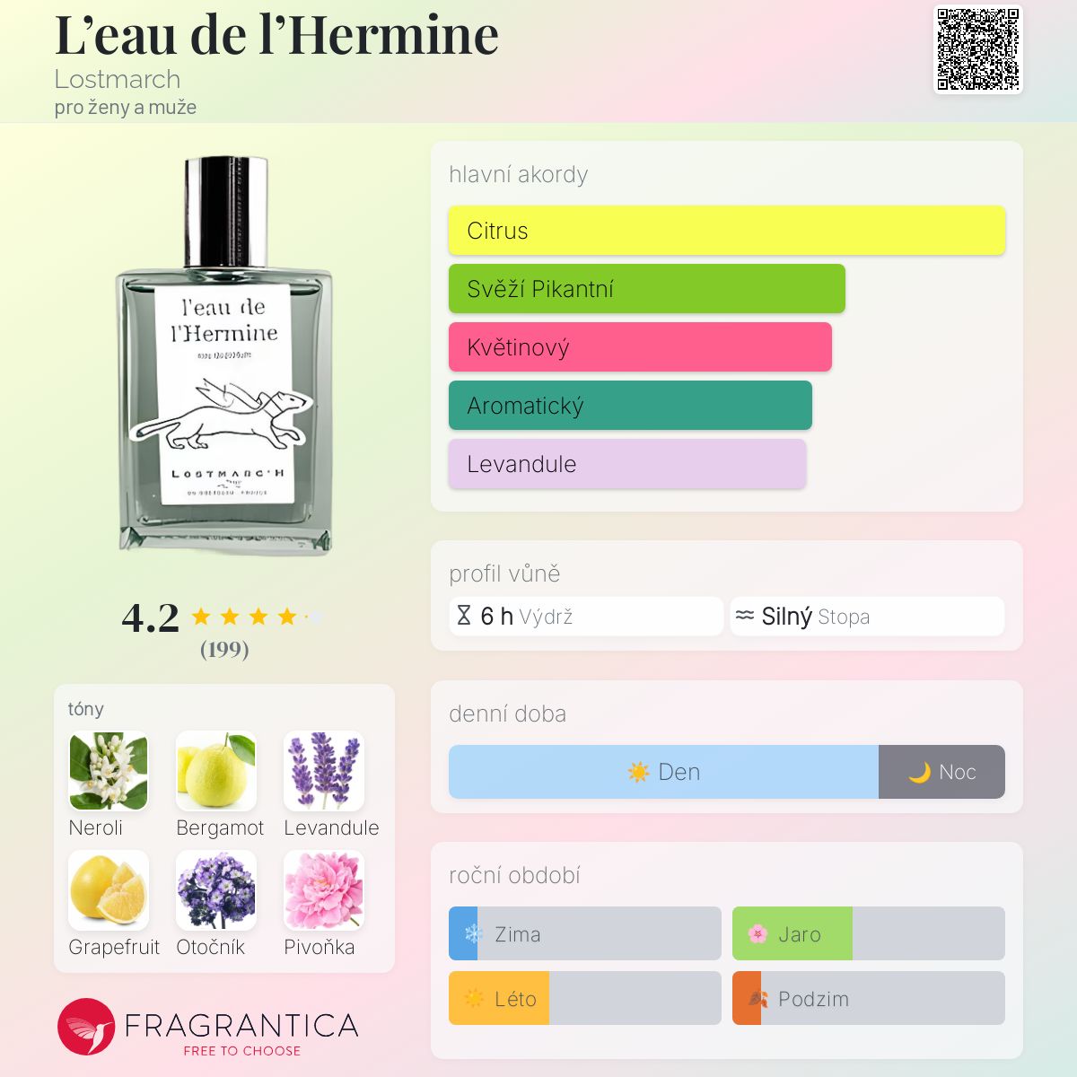 L’eau de l’Hermine podle Lostmarch je Floral Green vůně pro ženy a muže. L’eau de l’Hermine byla spuštěna během 2000.