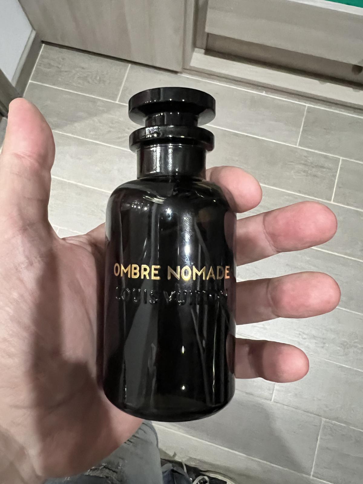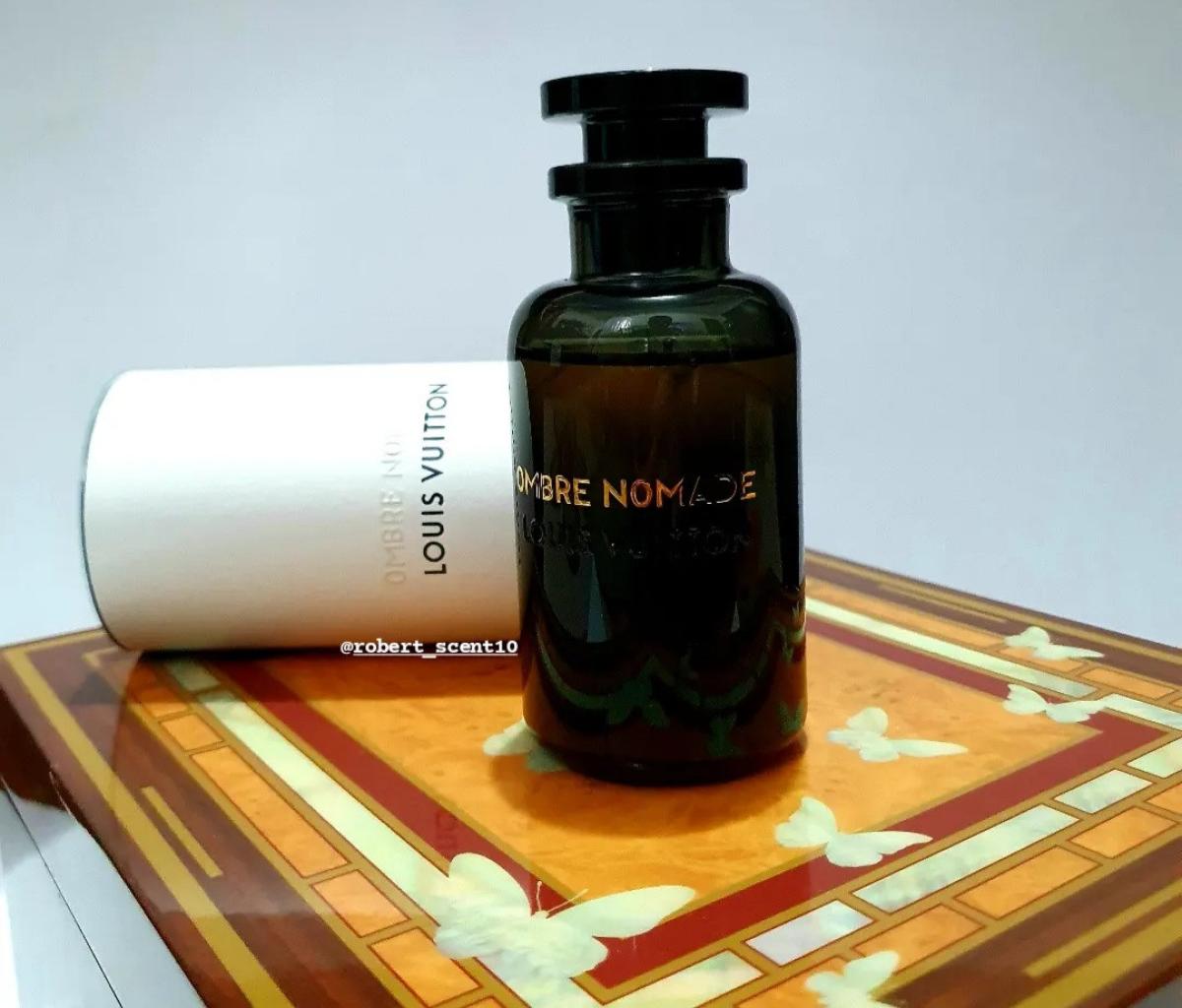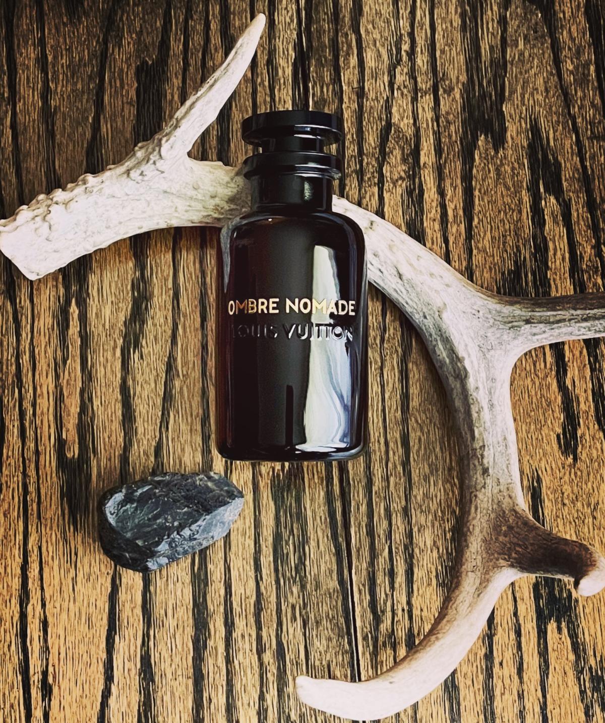 Louis Vuitton Ombre Nomade se otevírá silnou projekcí sladkých, oudových, pryskyřičných a květinových tónů. Úvod je odvážný, temný, ale se sladkým nádechem, vyzrálý, vystupující, lehce živočišný a velmi příjemný. Oud je velmi silná nóta, temná, štiplavá, lehce živočišná a s hořlavou nebo benzínovou atmosférou, přesto elegantní a rafinovaná. Přichází se sladkou ovocnou malinovou nótou, ale ta nezůstane dlouho, jak se rozvinou další tóny, ovocná sladkost malin začne ustupovat do pozadí. Růže je výrazným květinovým akordem, ale sedí několik kroků za oudem a vytváří jemný aromatický dotek, který vyvažuje temný a odvážný oud. Kadidlo a bříza spojují své tóny v jeden kouřový, silný, lehce zelený a projekci posilující, oba prohlubují temný charakter oudu. Když vůně začne schnout, začne být patrný benzoin, který dodává vůni hřejivý, pryskyřičný a sladký akord. Výrazný je také šafrán, hořkosladký, kožený, zemitý a kořeněný. Ambrové dřevo a pelargonie mají skromný podíl, působí jako podpůrné tóny v pozadí. Vůně je poměrně lineární, má několik málo, ale znatelných změn od otevření po zaschnutí. V úvodu se objevuje sladká ovocná malina, ale tato nóta ustupuje do pozadí, jakmile se rozvinou pryskyřičné a kořeněné tóny, také počáteční oud je štiplavý s výraznou hořlavou nebo benzínovou atmosférou, která se však ke konci trochu zmírní a stává se příjemnější. Jakmile Louis Vuitton Ombre Nomade dosáhne úplného zaschnutí, lze ji shrnout jako silně vystouplou, mírně sladkou, temnou vůni oudu, kouřového kadidla, sladkého pryskyřičného benzoinu a kořeněného šafránu s růží a ovocnými akordy. Vůně působí lehce živočišně, chladně, ležérně, církevně, nóbl, velitelsky, temně, hustě, suše, zemitě, elegantně, exoticky, draze, formálně, drsně, těžce, kvalitně, impozantně, intenzivně, lehce koženě, dlouhotrvající, mužně vyzrálá, tajemně, nočně, orientálně, oudy, silně, ostře, pryskyřičně, rafinovaně, bohatě, kouřově, zvláštně, silně, sladce, teple, dřevitě a příjemně.