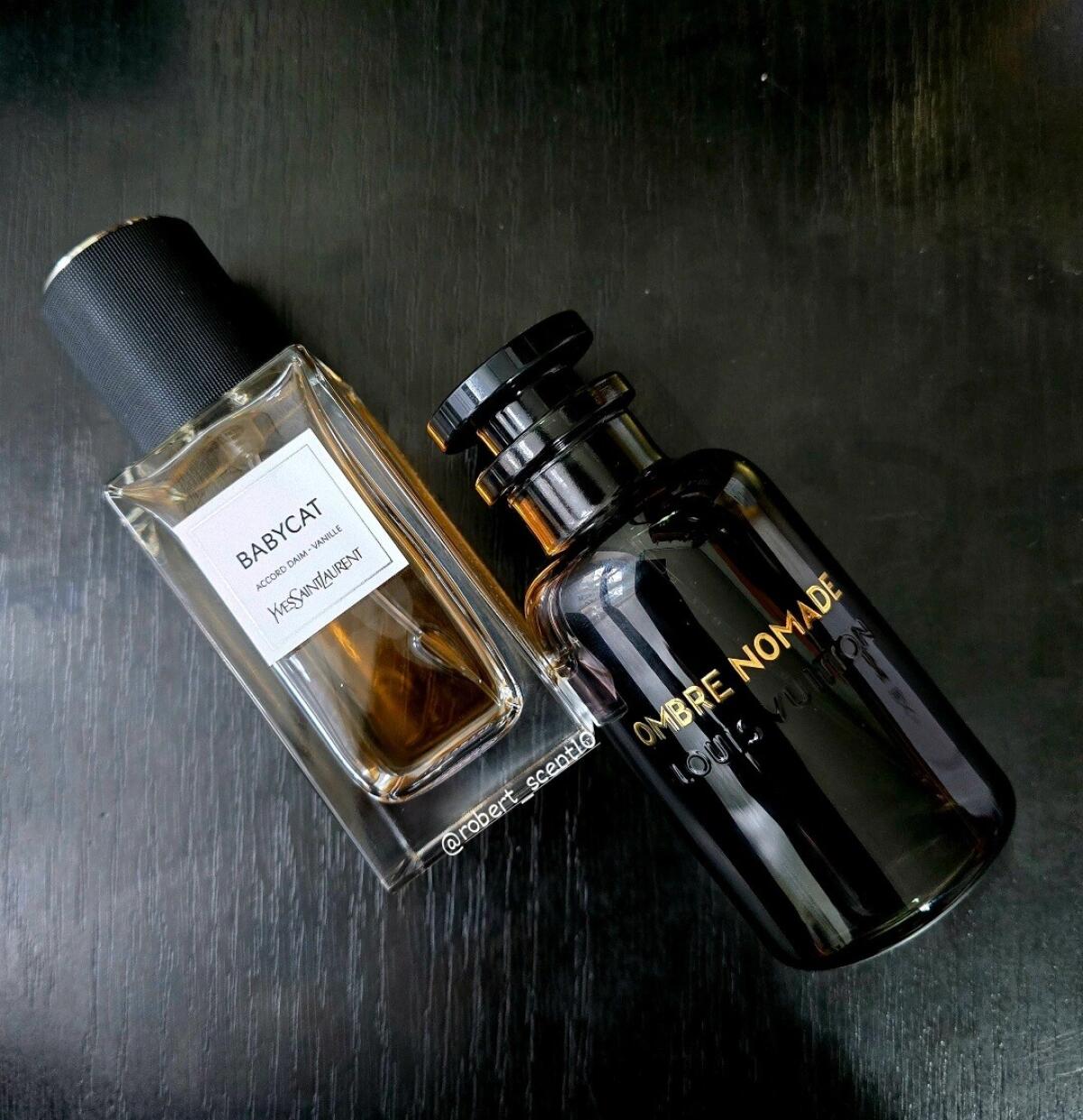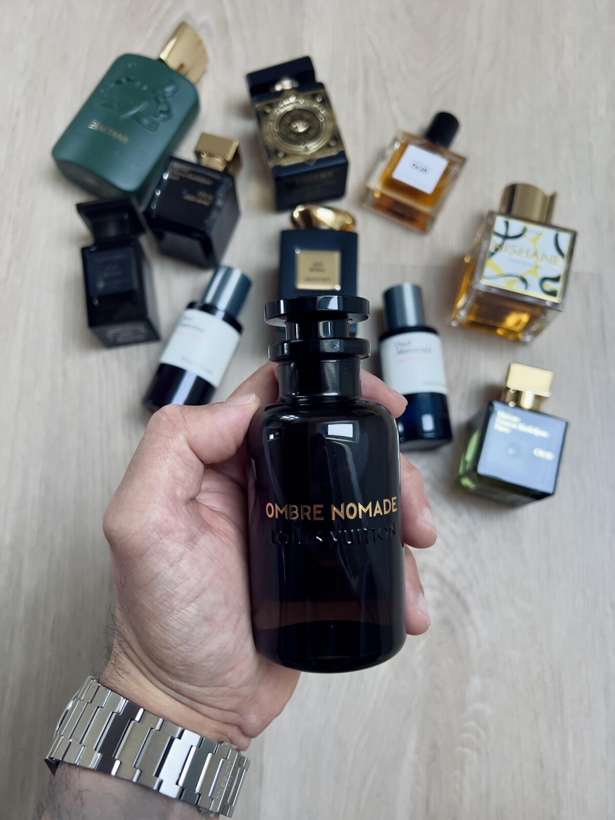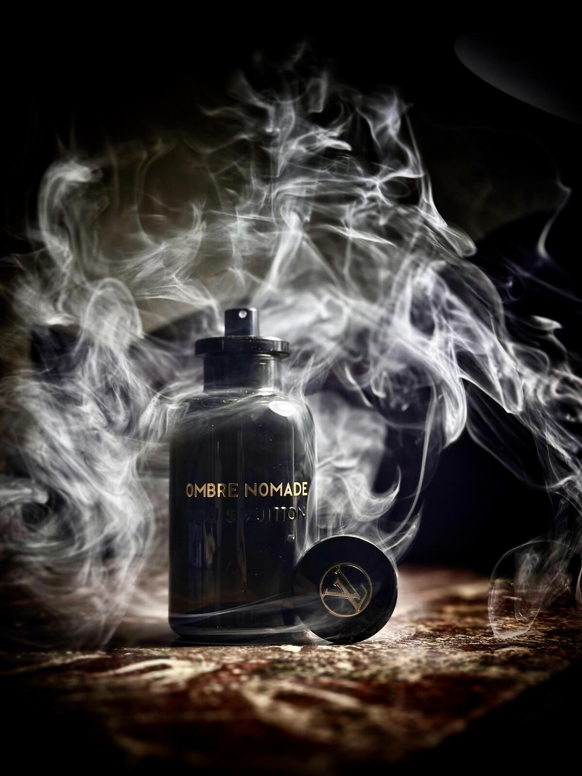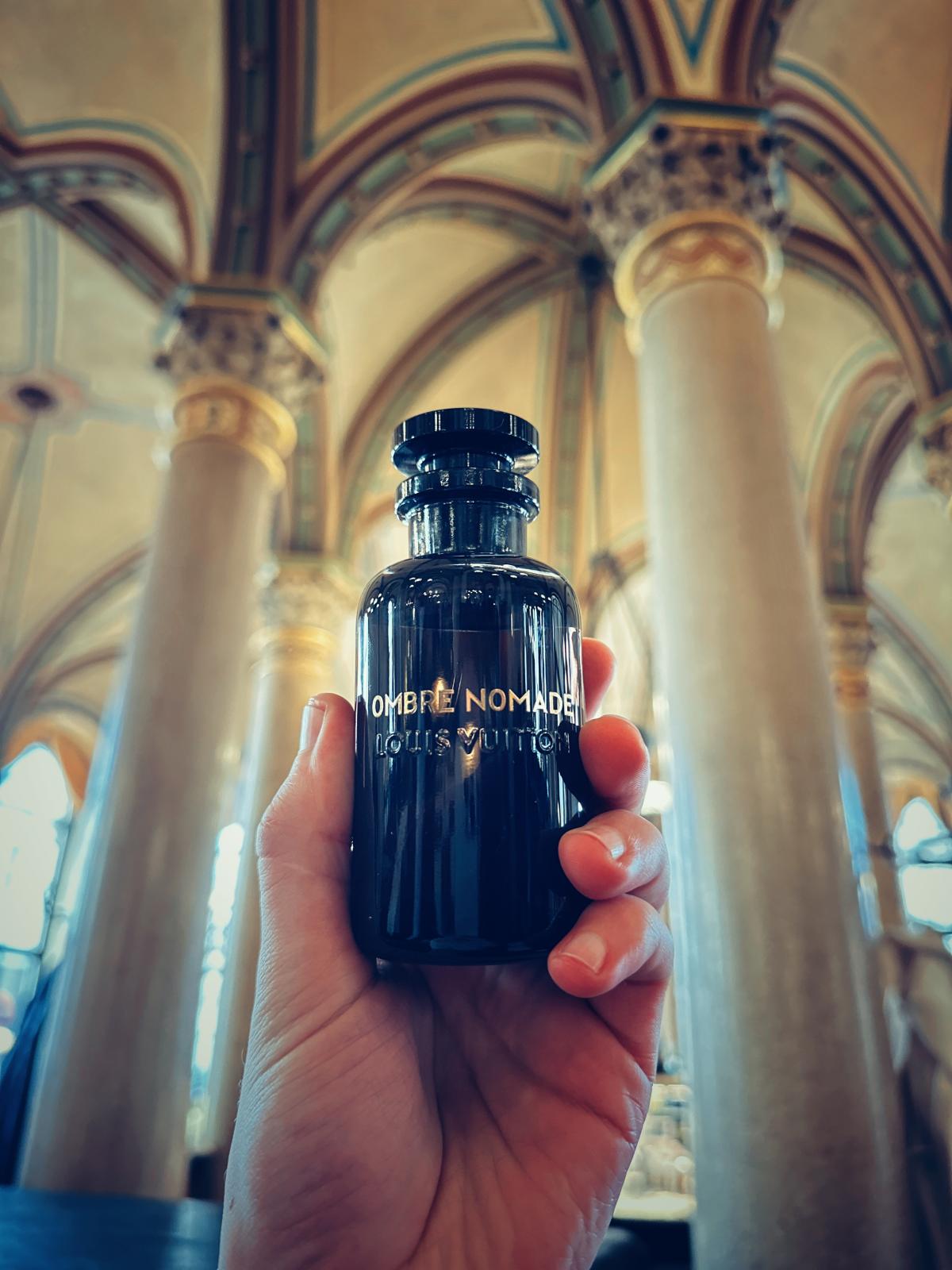 Louis Vuitton Ombre Nomade se otevírá silnou projekcí sladkých, oudových, pryskyřičných a květinových tónů. Úvod je odvážný, temný, ale se sladkým nádechem, vyzrálý, vystupující, lehce živočišný a velmi příjemný. Oud je velmi silná nóta, temná, štiplavá, lehce živočišná a s hořlavou nebo benzínovou atmosférou, přesto elegantní a rafinovaná. Přichází se sladkou ovocnou malinovou nótou, ale ta nezůstane dlouho, jak se rozvinou další tóny, ovocná sladkost malin začne ustupovat do pozadí. Růže je výrazným květinovým akordem, ale sedí několik kroků za oudem a vytváří jemný aromatický dotek, který vyvažuje temný a odvážný oud. Kadidlo a bříza spojují své tóny v jeden kouřový, silný, lehce zelený a projekci posilující, oba prohlubují temný charakter oudu. Když vůně začne schnout, začne být patrný benzoin, který dodává vůni hřejivý, pryskyřičný a sladký akord. Výrazný je také šafrán, hořkosladký, kožený, zemitý a kořeněný. Ambrové dřevo a pelargonie mají skromný podíl, působí jako podpůrné tóny v pozadí. Vůně je poměrně lineární, má několik málo, ale znatelných změn od otevření po zaschnutí. V úvodu se objevuje sladká ovocná malina, ale tato nóta ustupuje do pozadí, jakmile se rozvinou pryskyřičné a kořeněné tóny, také počáteční oud je štiplavý s výraznou hořlavou nebo benzínovou atmosférou, která se však ke konci trochu zmírní a stává se příjemnější. Jakmile Louis Vuitton Ombre Nomade dosáhne úplného zaschnutí, lze ji shrnout jako silně vystouplou, mírně sladkou, temnou vůni oudu, kouřového kadidla, sladkého pryskyřičného benzoinu a kořeněného šafránu s růží a ovocnými akordy. Vůně působí lehce živočišně, chladně, ležérně, církevně, nóbl, velitelsky, temně, hustě, suše, zemitě, elegantně, exoticky, draze, formálně, drsně, těžce, kvalitně, impozantně, intenzivně, lehce koženě, dlouhotrvající, mužně vyzrálá, tajemně, nočně, orientálně, oudy, silně, ostře, pryskyřičně, rafinovaně, bohatě, kouřově, zvláštně, silně, sladce, teple, dřevitě a příjemně.
