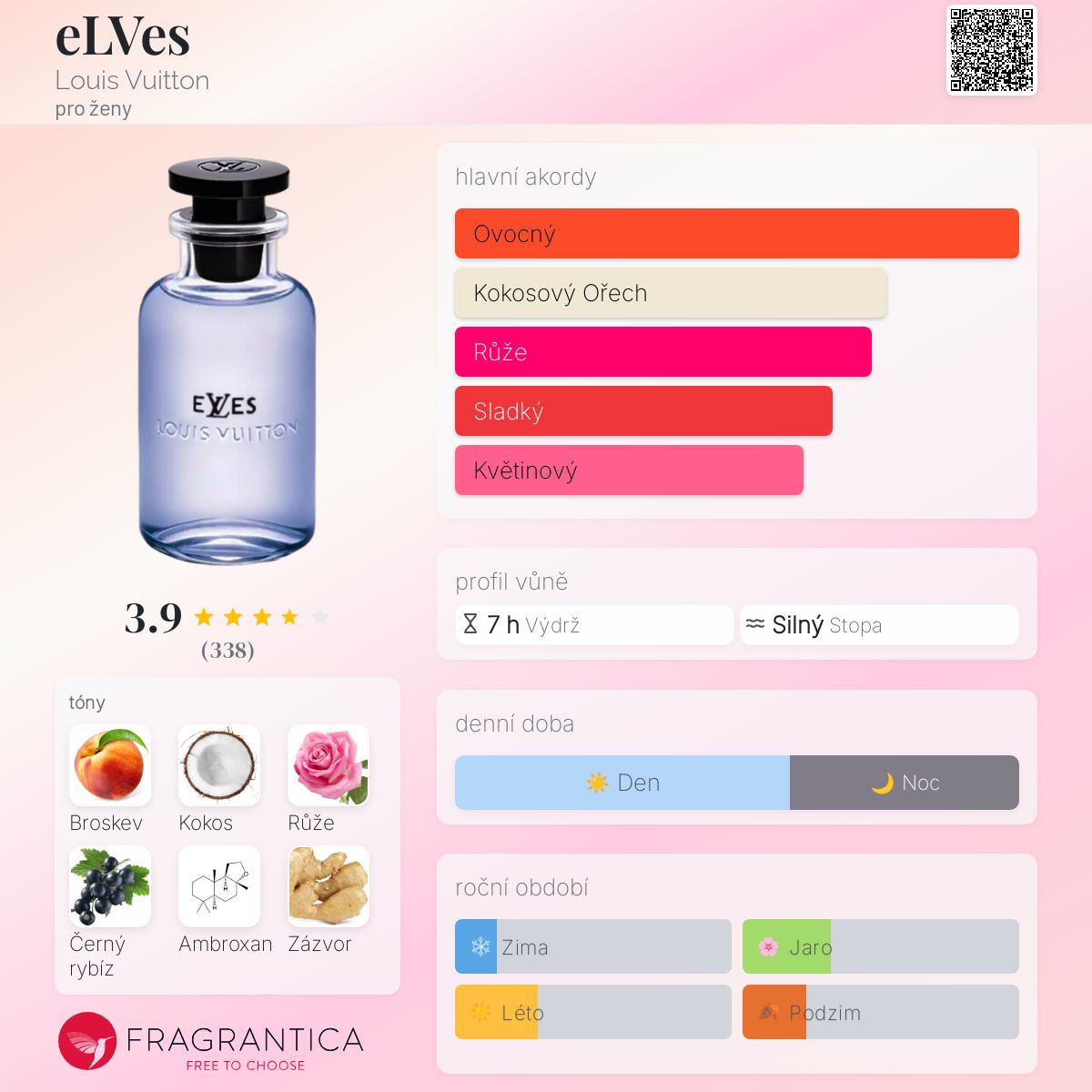 eLVes podle Louis Vuitton je Orientální Floral vůně pro ženy. Toto je nová vůně. eLVes byl/a uveden/a v roce 2025. "Nosem" za touto vůní je Jacques Cavallier Belletrud. Vrchní tóny jsou Broskev, Černý rybíz, Zázvor a Skořice; střední tóny jsouKokosové mléko, Bulharská růže, Růže, Konvalinka a Fialka ; základní tóny jsou Ambroxan a Pačuli.