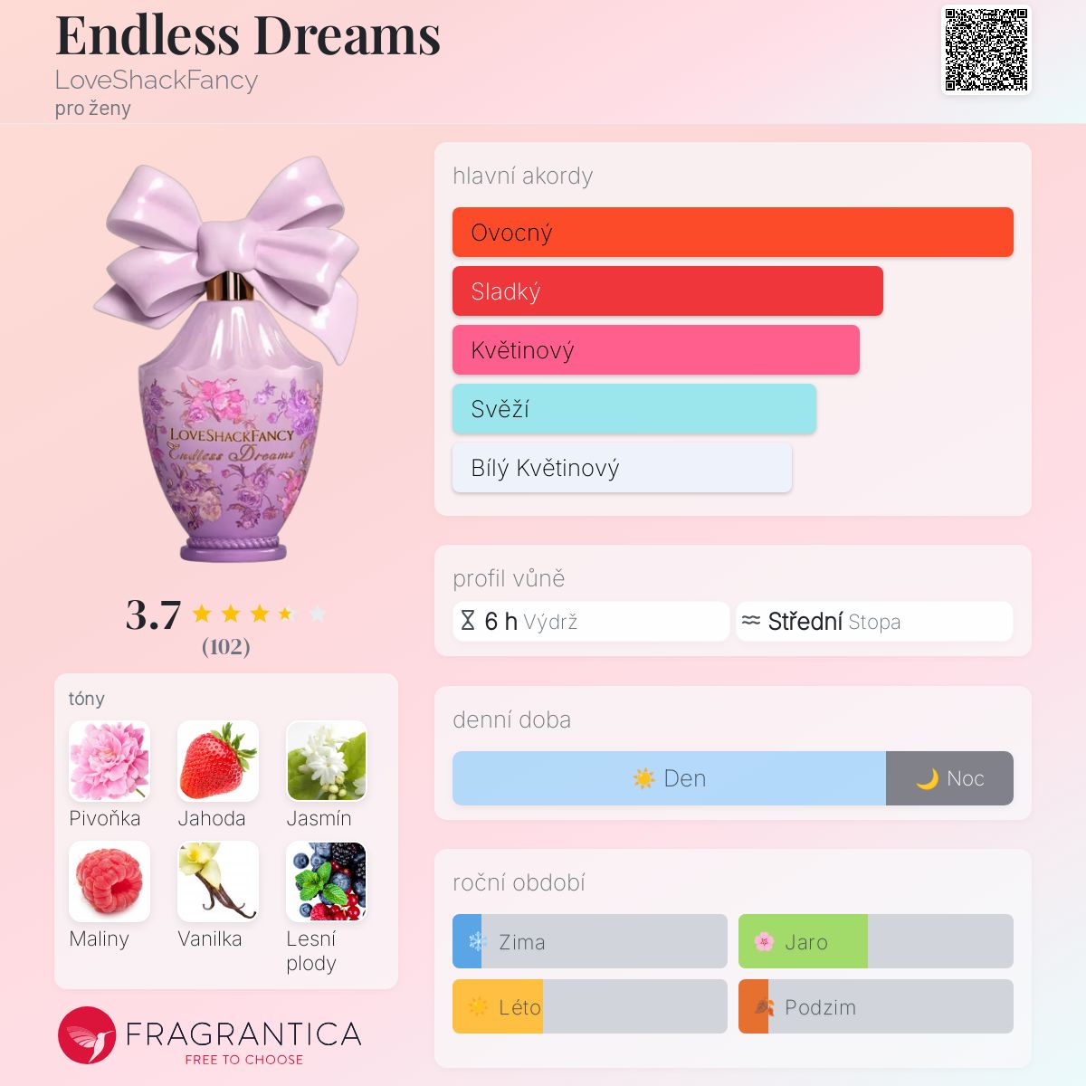 Endless Dreams podle LoveShackFancy je Floral vůně pro ženy. Toto je nová vůně. Endless Dreams byl/a uveden/a v roce 2024. "Nosem" za touto vůní je Gabriela Chelariu.