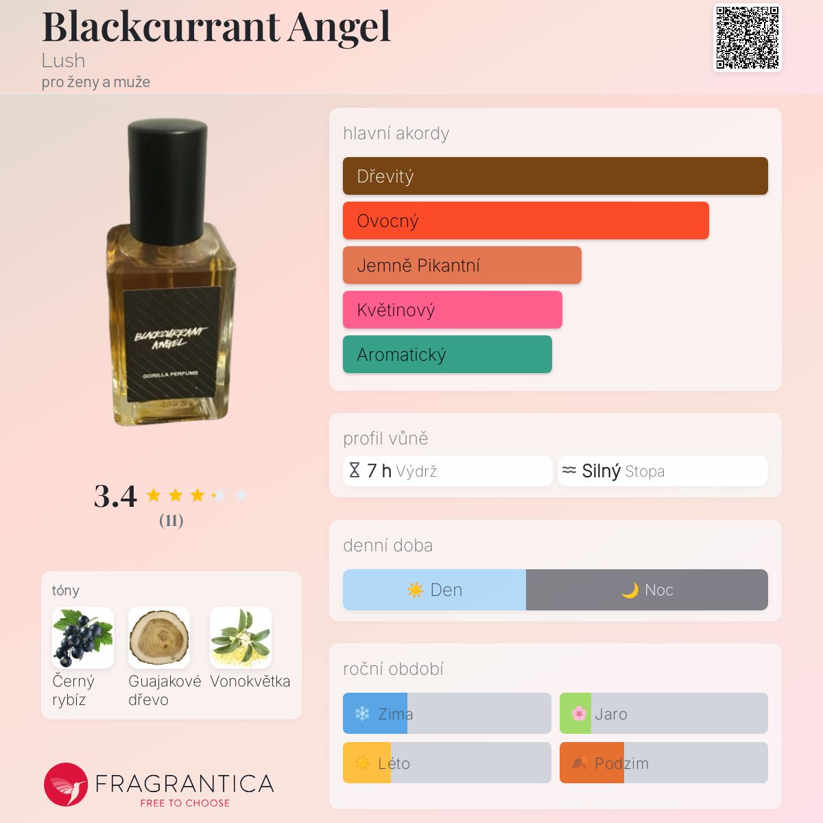 Blackcurrant Angel podle Lush je Woody vůně pro ženy a muže. Blackcurrant Angel byl/a uveden/a v roce 2017. "Nosem" za touto vůní je Simon Constantine. Vrchní tón je Černý rybíz ; střední tón jeVonokvětka ; základní tón je Guajakové dřevo.