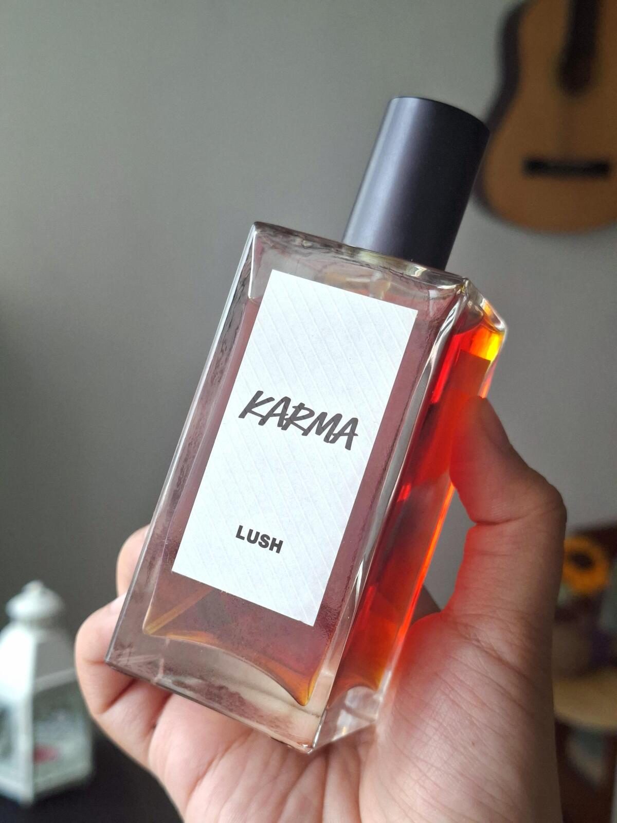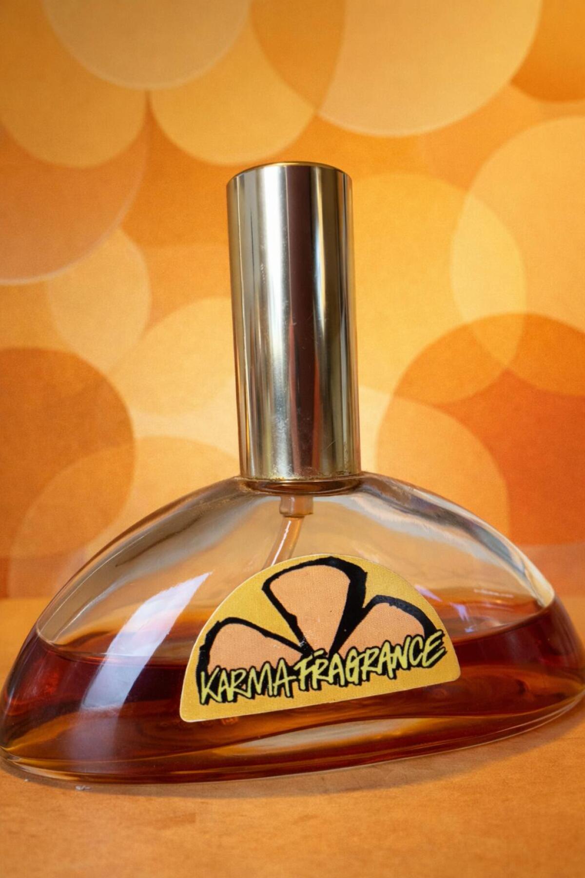 Karma je vůně, kterou buď milujete, nebo nenávidíte, bez střední cesty. Jako každý parfém nás přenese do nějakého obrazu, do nějaké situace, Karma by pro mě byla vůní horké, parné koupele, léčivého nálevu z pomerančové kůry, citronely, koření a cypřiše nebo těch dražších indických vonných tyčinek, jako je Nag Champa...., které při hoření zaplaví celý dům.