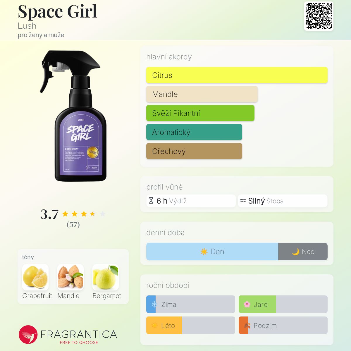 Space Girl podle Lush je Citrus Gourmand vůně pro ženy a muže. Toto je nová vůně. Space Girl byl/a uveden/a v roce 2024.