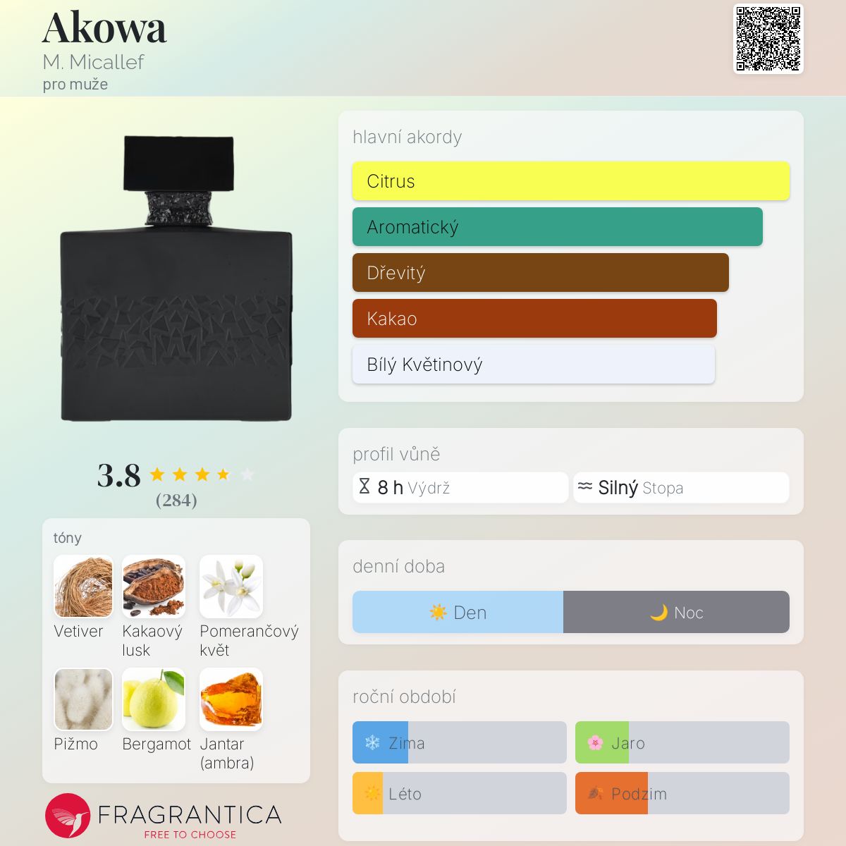 Akowa podle M. Micallef je Woody Spicy vůně pro muže. Akowa byl/a uveden/a v roce 2015. Akowa byl/a vytvořen/a Geoffrey Nejman a Jean-Claude Astier.