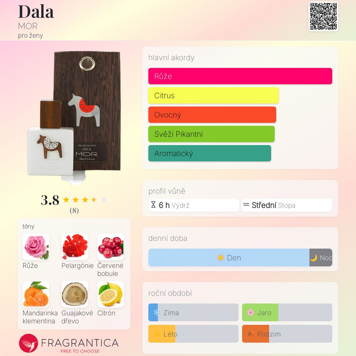 Dala podle MOR je Floral Fruity vůně pro ženy. Dala byl/a uveden/a v roce 2009. Vrchní tóny jsou Mandarinka klementina, Citron amalfi a Ostružina; střední tóny jsouPelargónie, Červené bobule a Jasmín ; základní tóny jsou Růže, Guajakové dřevo a Pižmo.