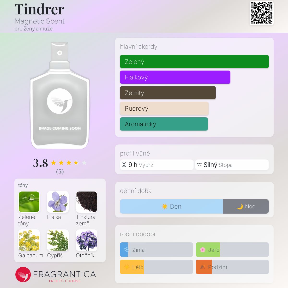 Tindrer podle Magnetic Scent je Aromatic vůně pro ženy a muže. Tindrer byl/a uveden/a v roce 2012. "Nosem" za touto vůní je Spyros Drosopoulos.