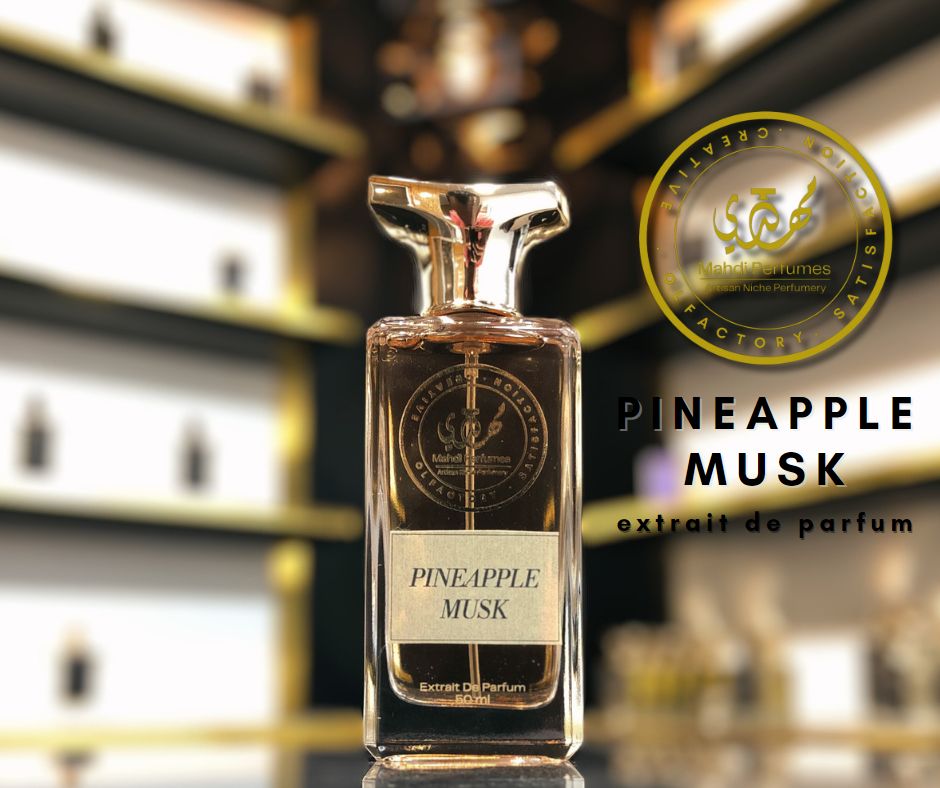 Pineapple Musk podle Mahdi Perfumes je vůně pro ženy a muže. Toto je nová vůně. Pineapple Musk byl/a uveden/a v roce 2023. Vrchní tóny jsou Ananas, Bergamot a Grapefruit; střední tóny jsouKonvalinka, Jasmín a Jalovcové bobulky ; základní tóny jsou Dubový mech, Pačuli, Dřevité tóny, Jantar (ambra) a Pižmo.