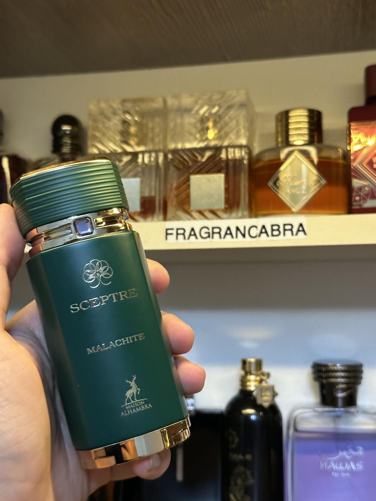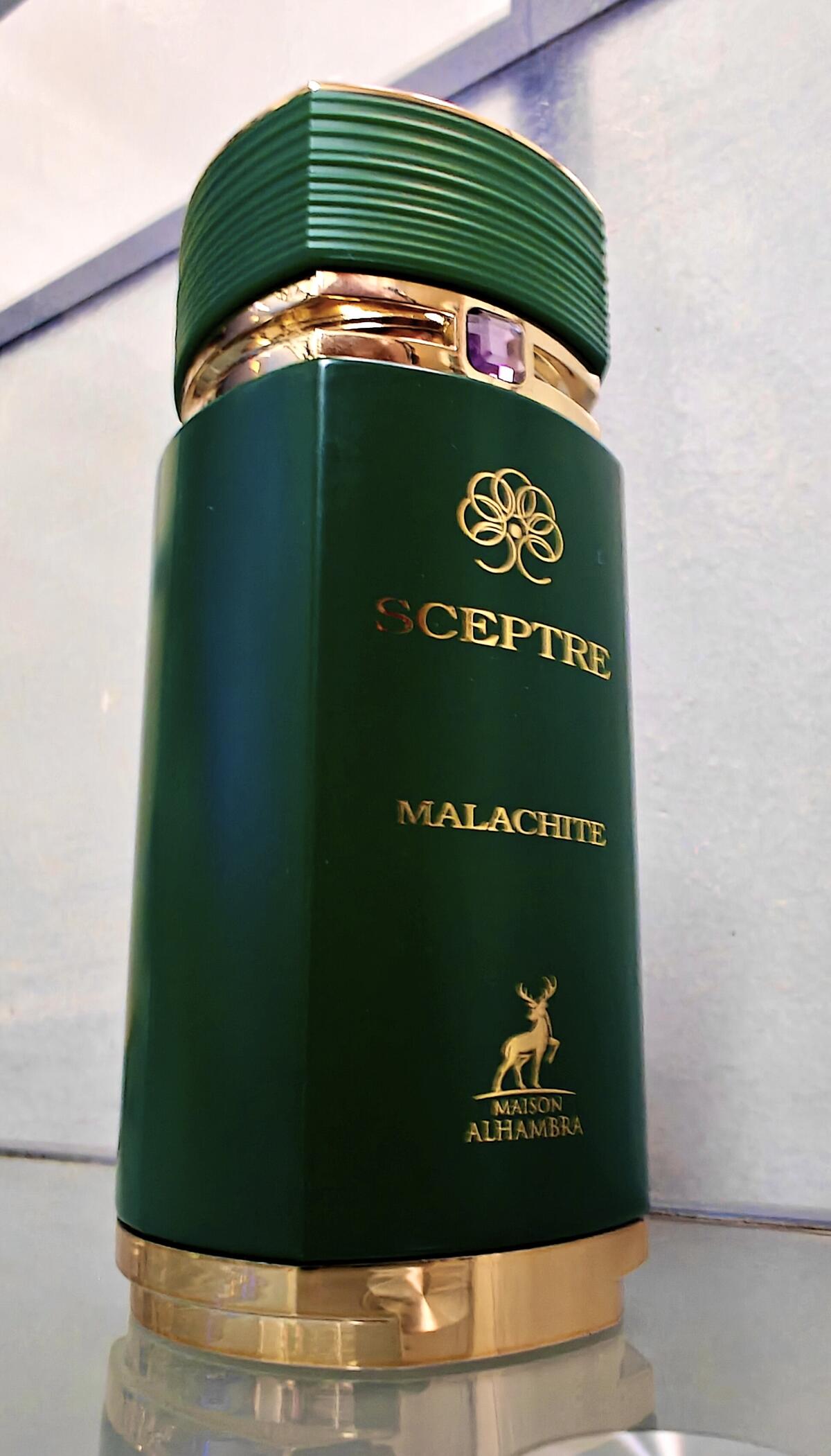 Sceptre Malachite podle Maison Alhambra je Orientální Woody vůně pro ženy a muže. Sceptre Malachite byl/a uveden/a v roce 2022. Vrchní tóny jsou Zelená mandarinka, Bergamot a Černý rybíz; střední tóny jsouAromatické tóny, Kořeněné tóny, Levandule, Růžový pepř a Jasmín ; základní tóny jsou Jantar (ambra), Pižmo, Dřevité tóny a Vetiver.