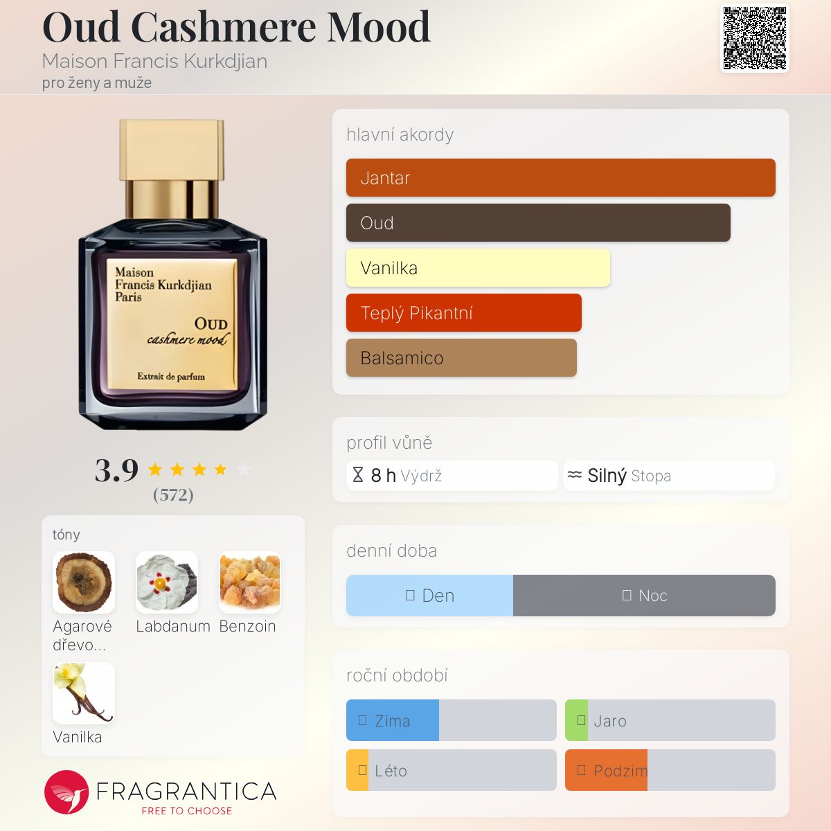 Oud Cashmere Mood podle Maison Francis Kurkdjian je Orientální vůně pro ženy a muže. Oud Cashmere Mood byl/a uveden/a v roce 2013. "Nosem" za touto vůní je Francis Kurkdjian.