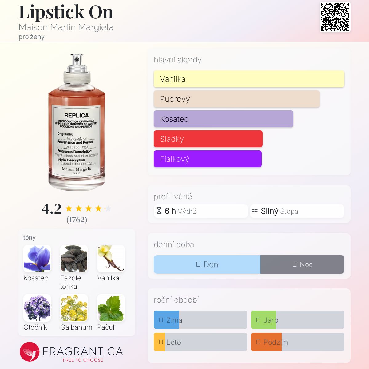 Ačkoli časem jistě dojdou všechny parfémy, které kdy existovaly, tóny Lipstick On budou přetrvávat, dokud bude možné nosit kosmetiku a dvořit se milencům. Maison Martin Margiela, za tuto charakteristickou vůni ti vřele děkuji.