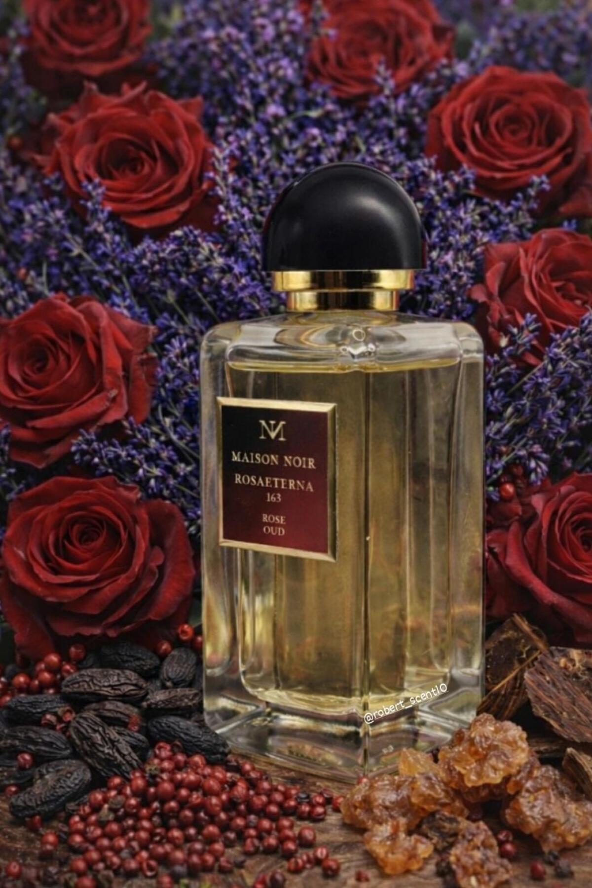Rosaeterna 163 podle Maison Noir je Floral Woody Musk vůně pro ženy a muže. Toto je nová vůně. Rosaeterna 163 byl/a uveden/a v roce 2025. Rosaeterna 163 byl/a vytvořen/a Alex Lee a Julie Massé. Vrchní tóny jsou Levandule, Bergamot a Růžový pepř; střední tóny jsouRůže, Labdanum a Fazole tonka ; základní tóny jsou Agarové dřevo (oud), Pačuli a Benzoin.