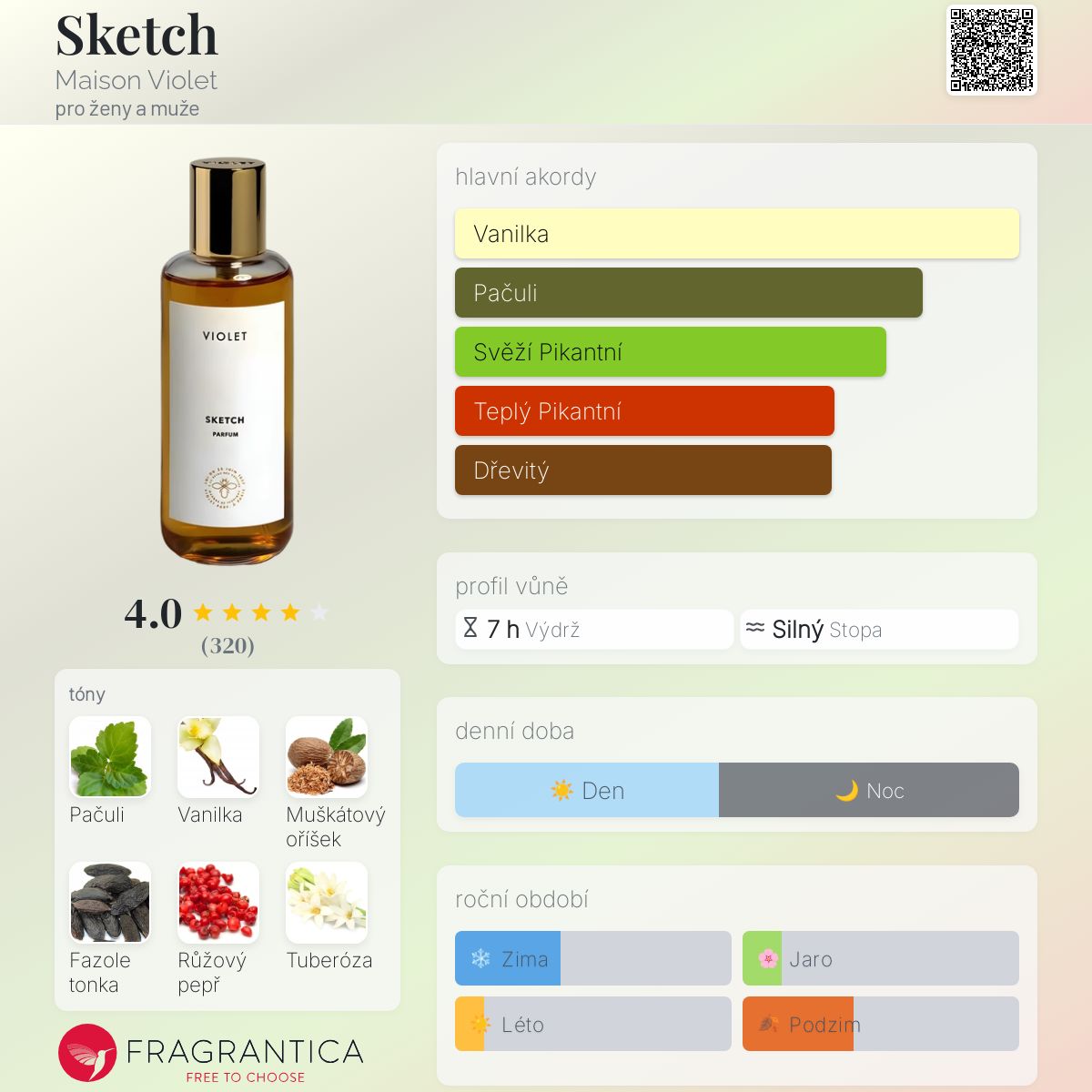 Sketch podle Maison Violet je Orientální Floral vůně pro ženy a muže. Sketch byl/a uveden/a v roce 2018. "Nosem" za touto vůní je Nathalie Lorson. Vrchní tóny jsou Muškátový oříšek, Růžový pepř a Bergamot; střední tóny jsouTuberóza a Růže ; základní tóny jsou Pačuli, Madagaskarská vanilka a Fazole tonka.