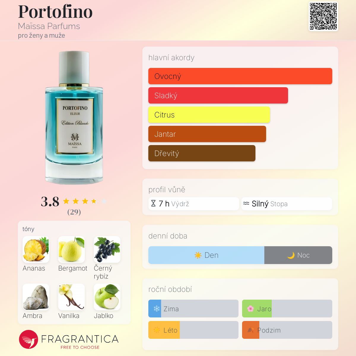 Portofino podle Maïssa Parfums je Aromatic vůně pro ženy a muže. Portofino byl/a uveden/a v roce 2020. Vrchní tóny jsou Ananas, Kalábrijský bergamot, Černý rybíz a Jablko; střední tóny jsouRůžový pepř, Jasmín, Bříza, Styrax a Pačuli ; základní tóny jsou Ambra, Vanilka, Dubový mech a Ylang-Ylang.