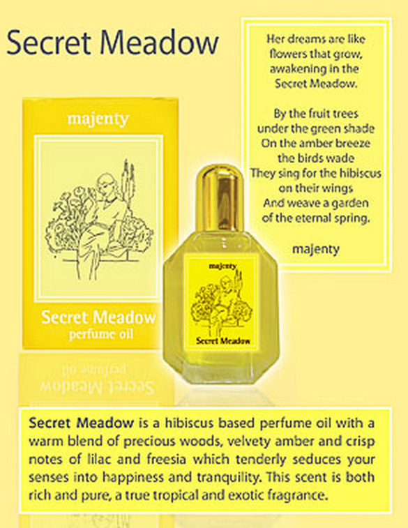 Secret Meadow podle Majenty je Floral Woody Musk vůně pro ženy. Secret Meadow byl/a uveden/a v roce 2007. "Nosem" za touto vůní je Jennifer Auspitz.