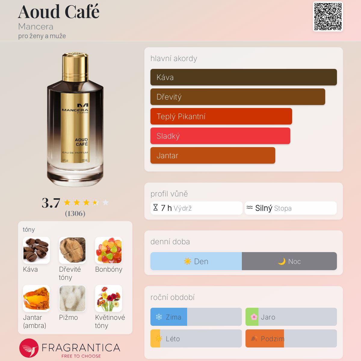 Aoud Café podle Mancera je Orientální Vanilla vůně pro ženy a muže. Aoud Café byl/a uveden/a v roce 2013. "Nosem" za touto vůní je Pierre Montale. Vrchní tóny jsou Černý rybíz, Bergamot a Broskev; střední tóny jsouKáva, Jantar (ambra) a Květinové tóny ; základní tóny jsou Dřevité tóny, Sladké tóny a Bílé pižmo.