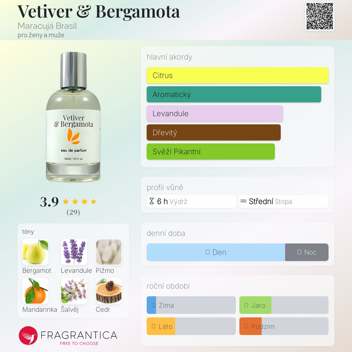 Vetiver & Bergamota podle Maracujá Brasil je Aromatic Fougere vůně pro ženy a muže. Vetiver & Bergamota byl/a uveden/a v roce 2019. Vrchní tóny jsou Bergamot, Mandarinka a Šalvěj; střední tóny jsouLevandule, Cedr a Fialkový list ; základní tóny jsou Pižmo, Vetiver a Jantar (ambra).