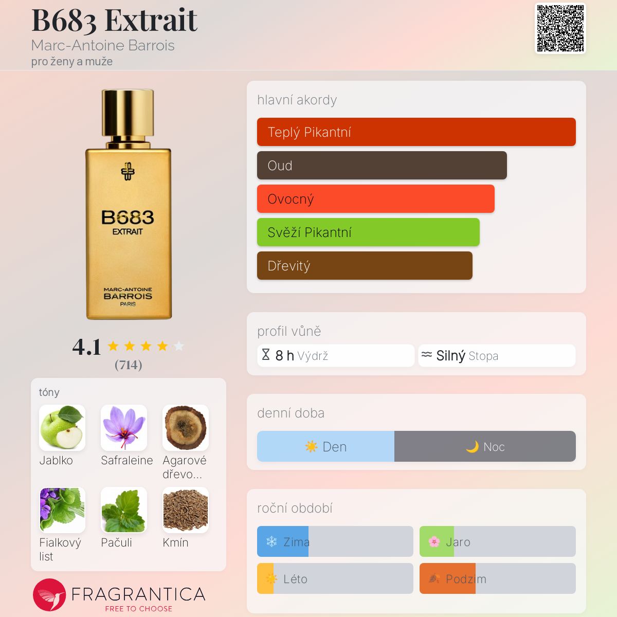 B683 Extrait podle Marc-Antoine Barrois je Orientální Woody vůně pro ženy a muže. B683 Extrait byl/a uveden/a v roce 2020. "Nosem" za touto vůní je Quentin Bisch.