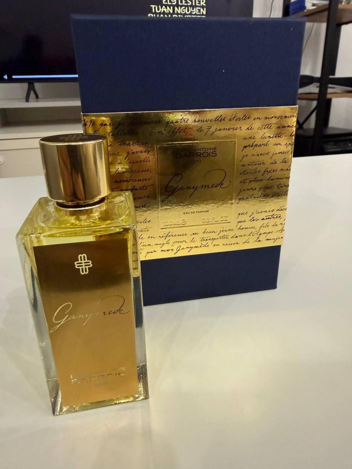 Ganymede podle Marc-Antoine Barrois je Woody Spicy vůně pro ženy a muže. Ganymede byl/a uveden/a v roce 2019. "Nosem" za touto vůní je Quentin Bisch. Vrchní tóny jsou Šafrán a Italská mandarinka; střední tóny jsouVonokvětka čínská, Fialkový list a Slaměnka ; základní tóny jsou Minerální tóny, Semiš, Dřevo akigala, Pižmo, Cedr a Pačuli.