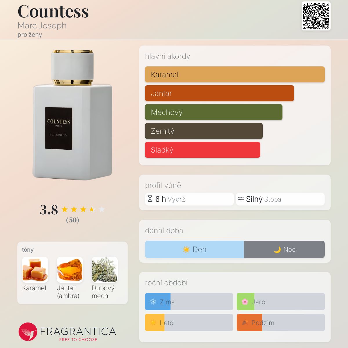 Countess podle Marc Joseph je Orientální Vanilla vůně pro ženy. Vrchní tón je Karamel ; střední tón jeMech ; základní tón je Jantar (ambra).