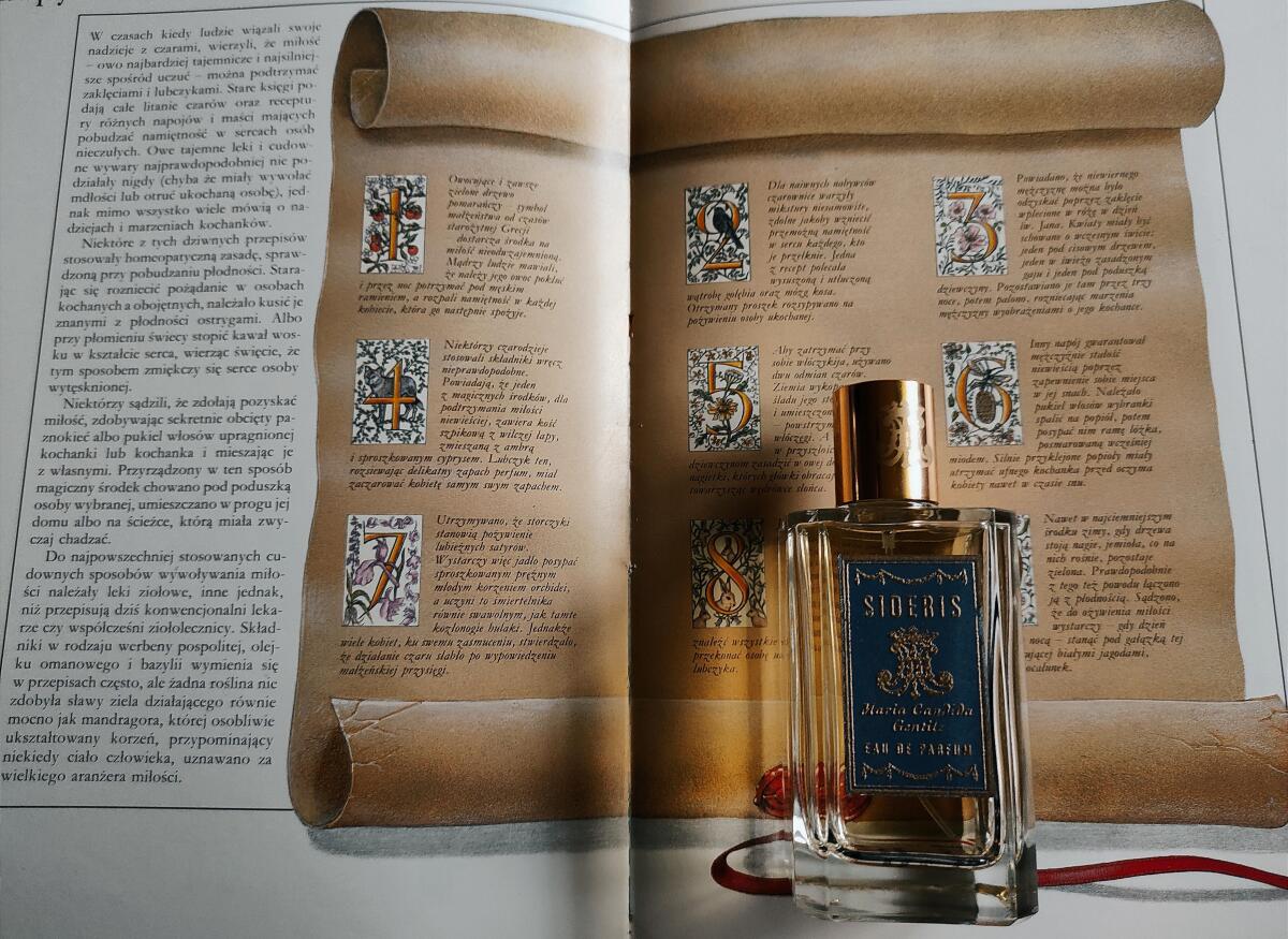 Sideris podle Maria Candida Gentile je Aromatic Spicy vůně pro ženy a muže. Sideris byl/a uveden/a v roce 2009. "Nosem" za touto vůní je Maria Candida Gentile. Vrchní tóny jsou Kadidlo, Myrha, Šafrán, Francouzské labdanum a Pepř; střední tóny jsouHorský čaj a Růže ; základní tóny jsou Včelí vosk, Benzoin, Dřevité tóny a Santalové dřevo.