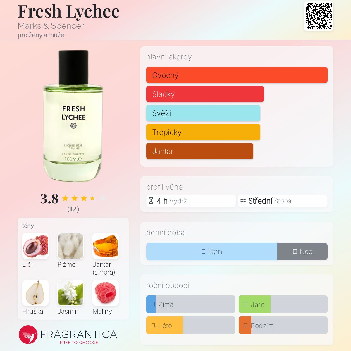 Fresh Lychee podle Marks & Spencer je Aromatic Fruity vůně pro ženy a muže. Fresh Lychee byl/a uveden/a v roce 2020.