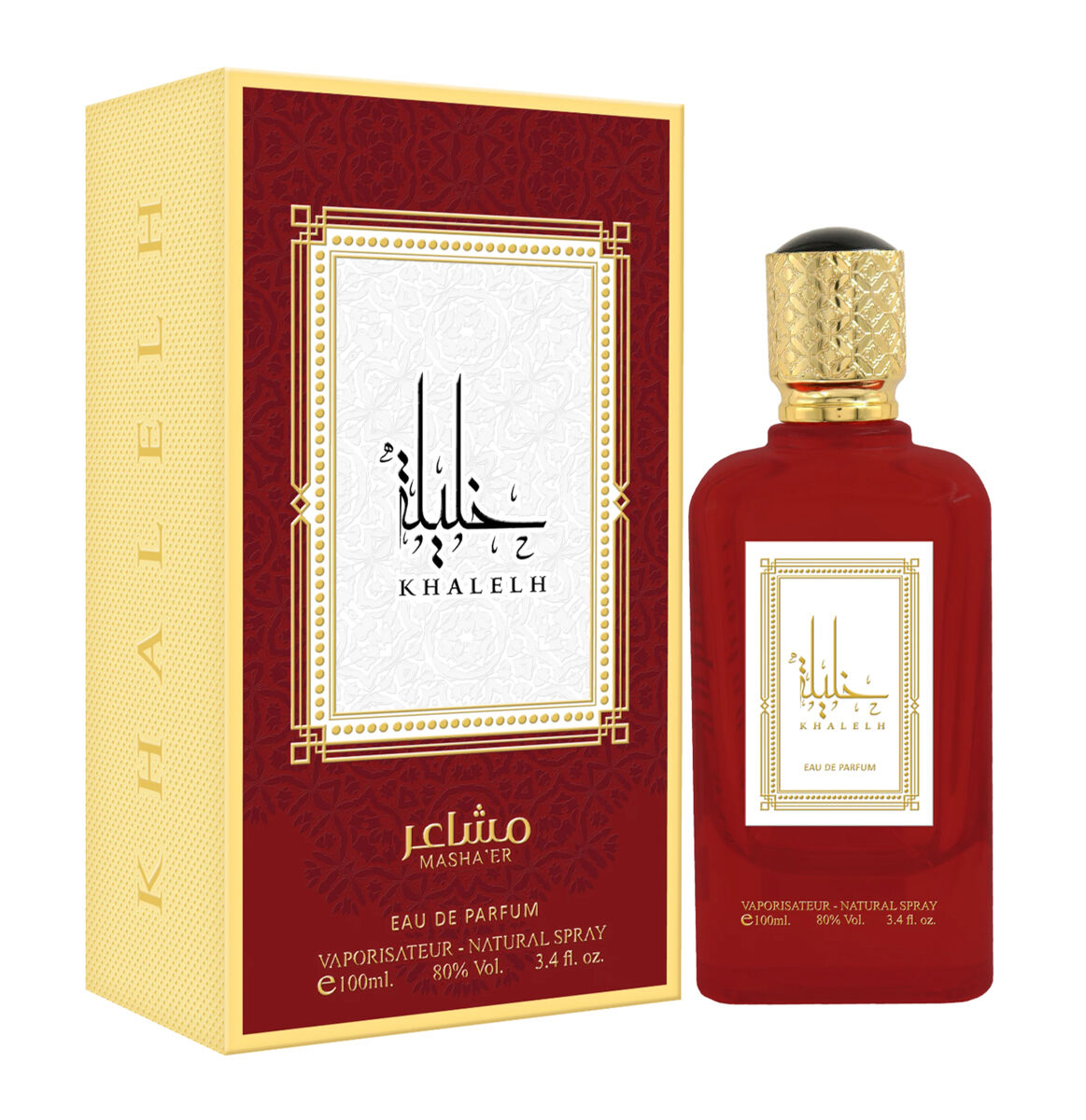 Khalelah podle Mashaer je Floral vůně pro ženy. Toto je nová vůně. Khalelah byl/a uveden/a v roce 2023. Vrchní tóny jsou Třešeň, Bergamot a Broskev; střední tóny jsouRůže, Vanilka a Jasmín ; základní tóny jsou Dřevité tóny, Jantar (ambra) a Pižmo.