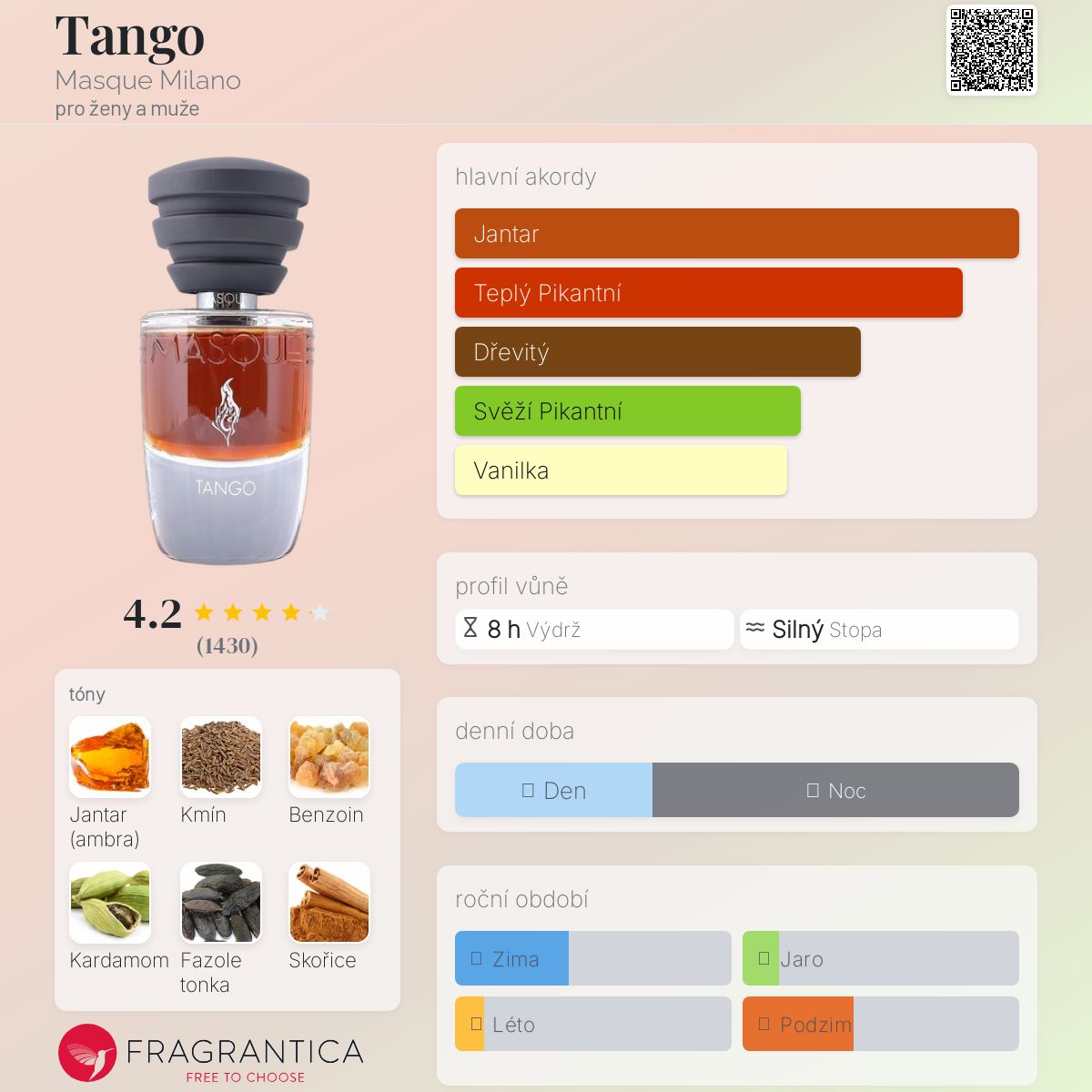 Tango je 100% přesný název pro tento výtvor. je to ohnivá skořice s jasmínovým a růžovým nádechem s jantarovým základem, který z něj dělá neuvěřitelný parfém.