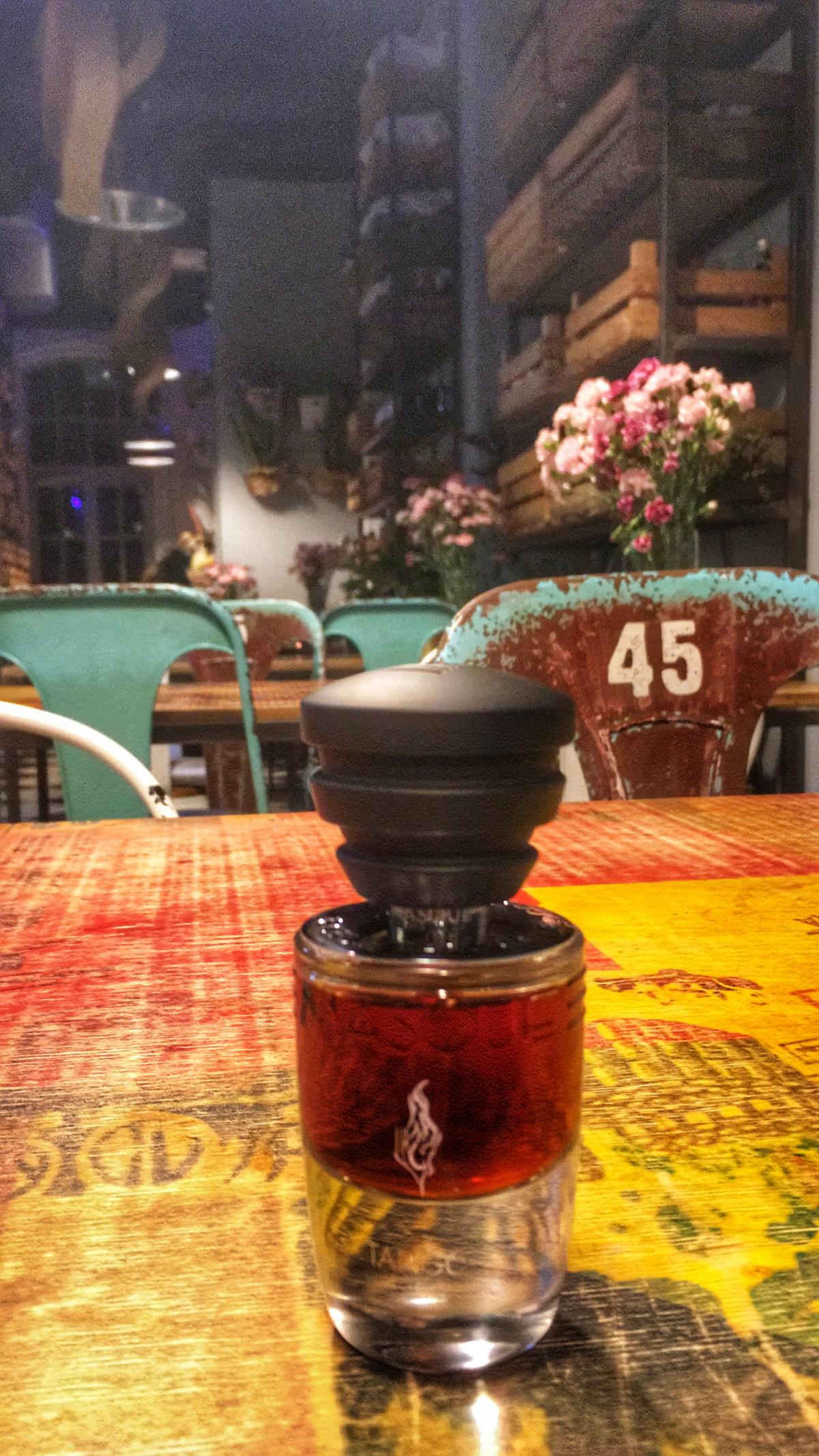 Velmi horký, hustý, ale ne dusivý. Skvělá hra kontrastů koření a pryskyřic, ale to vše se odehrává v jakémsi vzdušném prostoru kolem vás, ale ne na vás, což nechává prostor pro nádech a výdech.
