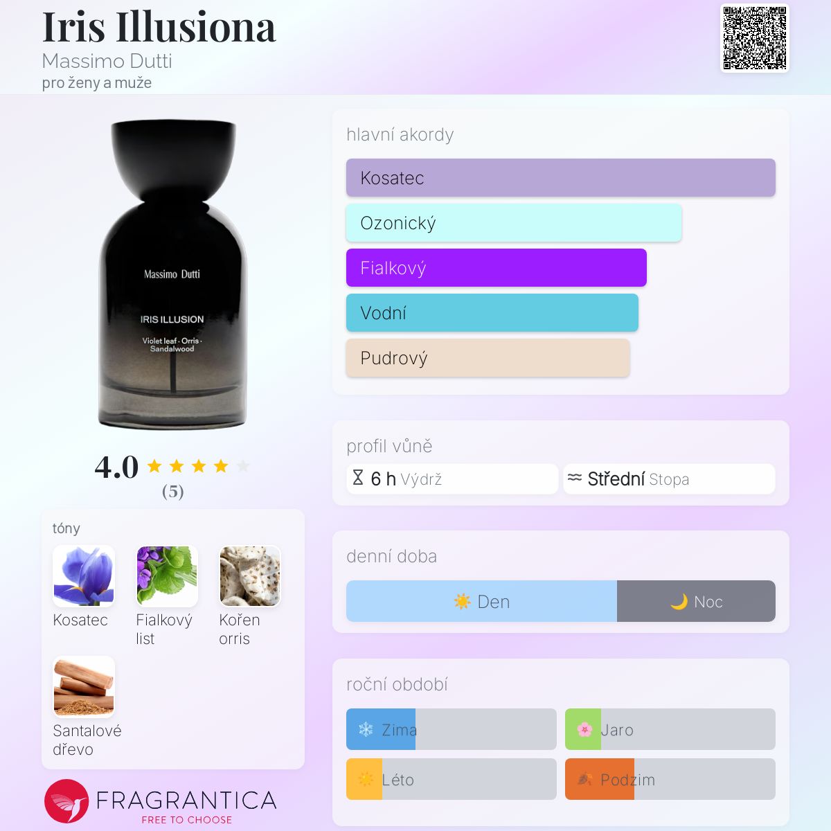 Iris Illusiona podle Massimo Dutti je Woody Floral Musk vůně pro ženy a muže. Toto je nová vůně. Iris Illusiona byl/a uveden/a v roce 2025.