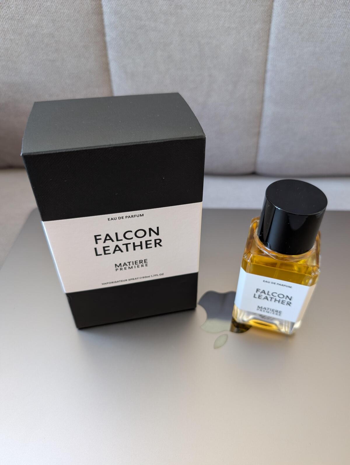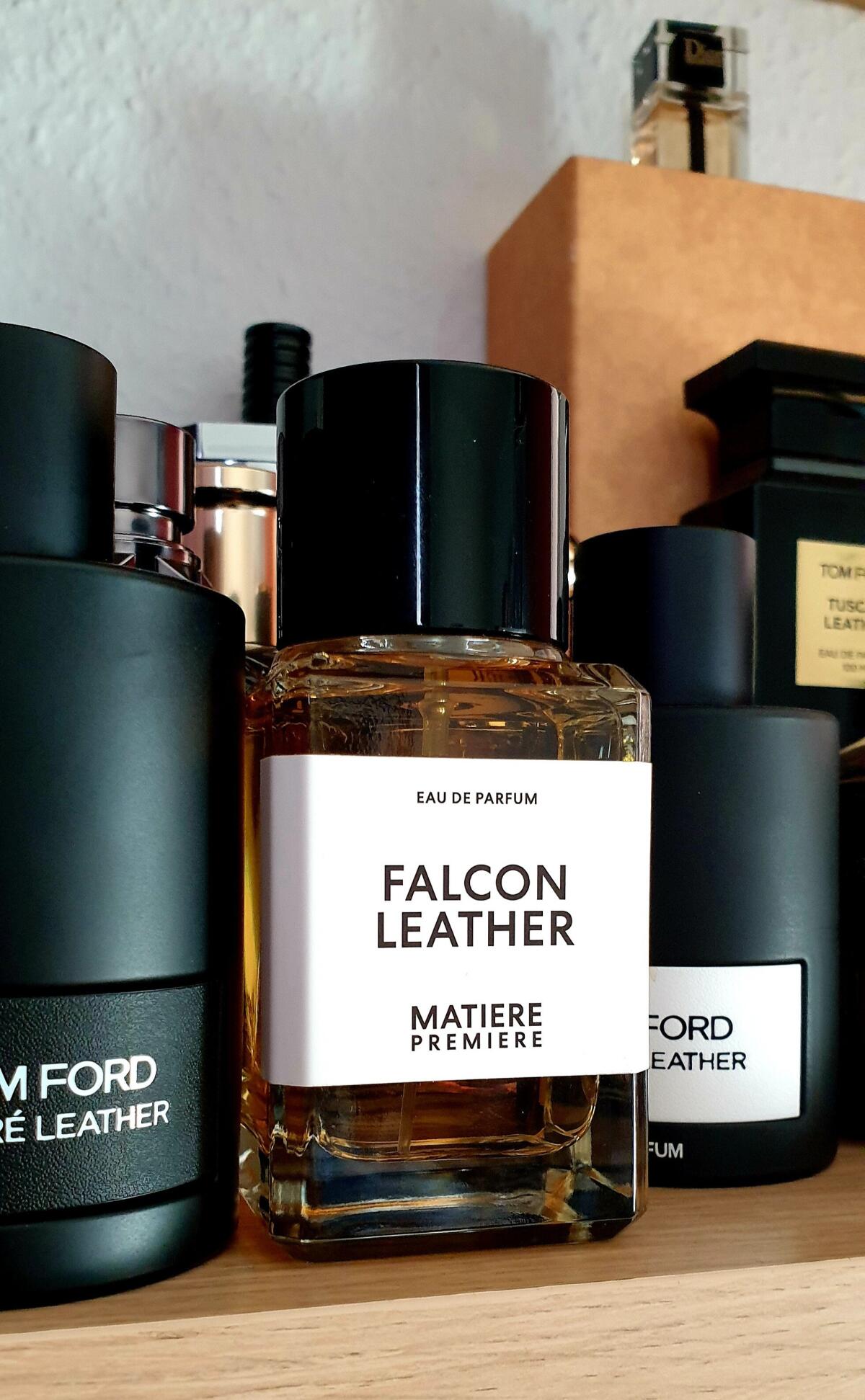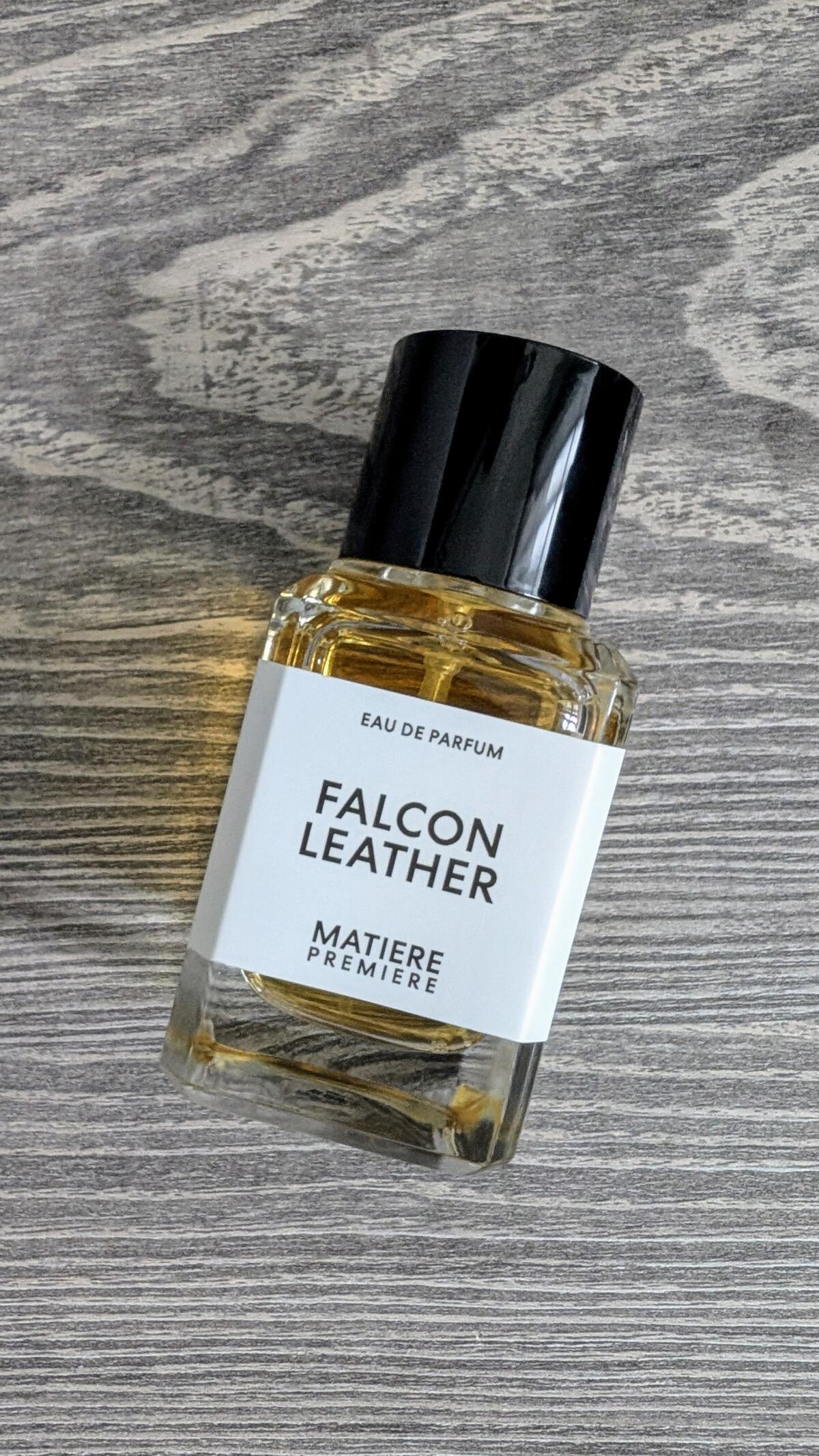 Ve vůni Falcon Leather Guichard používá březový dehet pocházející z Finska, aby prozkoumal silné kouřové vlastnosti kůže. Úvod vůně Falcon Leather charakterizuje rozptýlený oblak kouře zdůrazněný záblesky ostré pikantnosti. Syrovou zemitou kouřovost posouvá vpřed šafrán v úvodu, který je vyvážen zaoblenou sladkostí cistu labdanum a benzoinu v závěru.