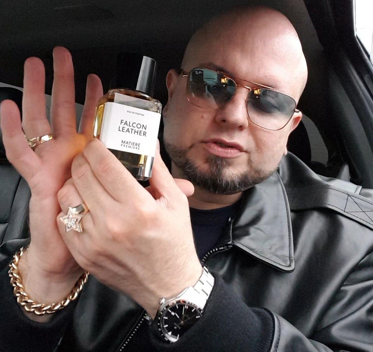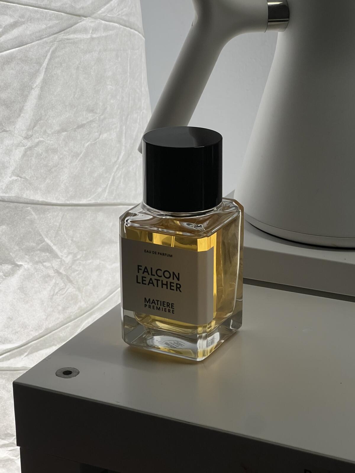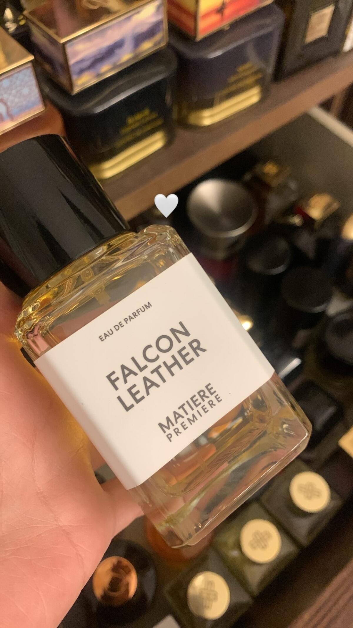 Ve vůni Falcon Leather Guichard používá březový dehet pocházející z Finska, aby prozkoumal silné kouřové vlastnosti kůže. Úvod vůně Falcon Leather charakterizuje rozptýlený oblak kouře zdůrazněný záblesky ostré pikantnosti. Syrovou zemitou kouřovost posouvá vpřed šafrán v úvodu, který je vyvážen zaoblenou sladkostí cistu labdanum a benzoinu v závěru.