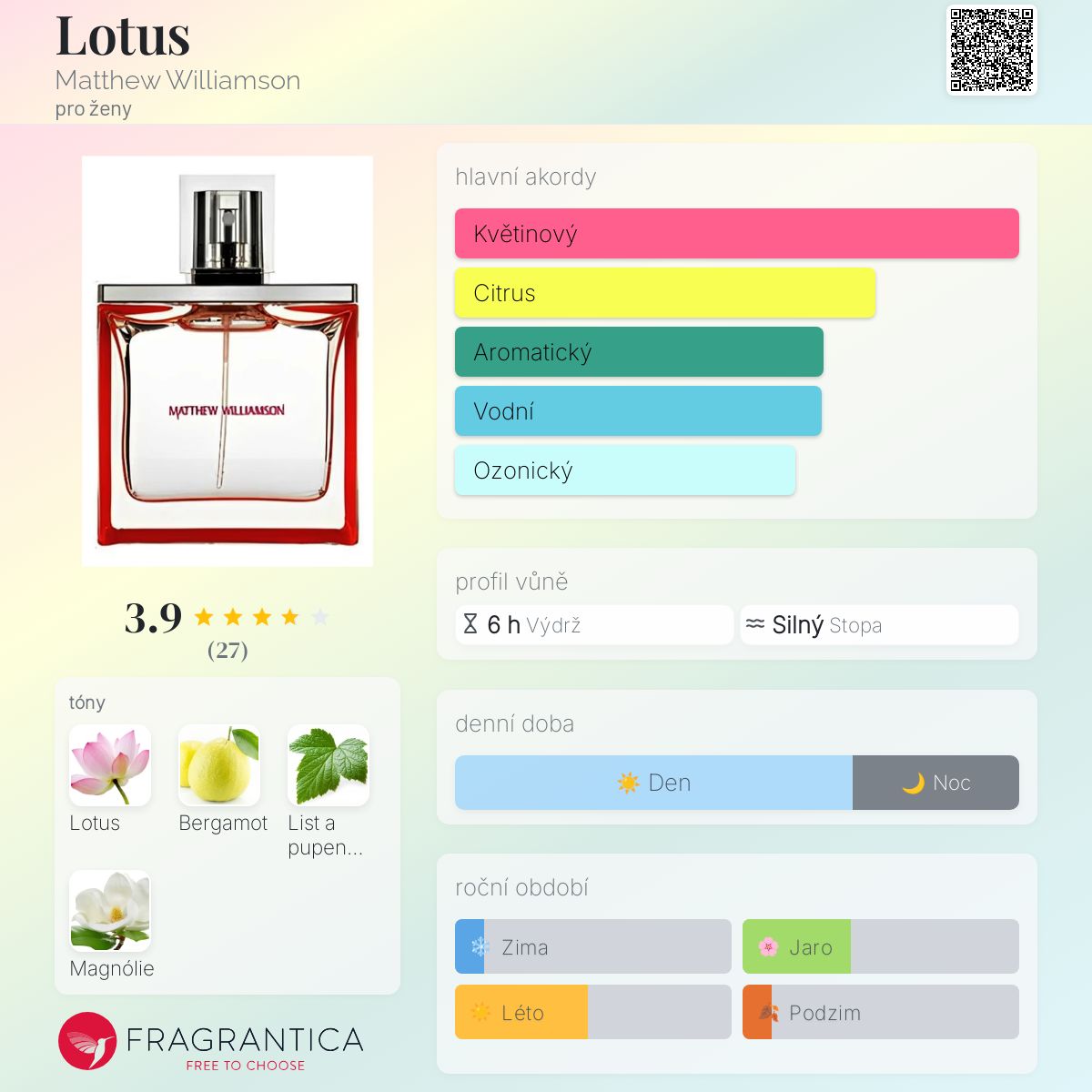 Lotus podle Matthew Williamson je Floral Aquatic vůně pro ženy. Lotus byl/a uveden/a v roce 2007. "Nosem" za touto vůní je Clement Gavarry.