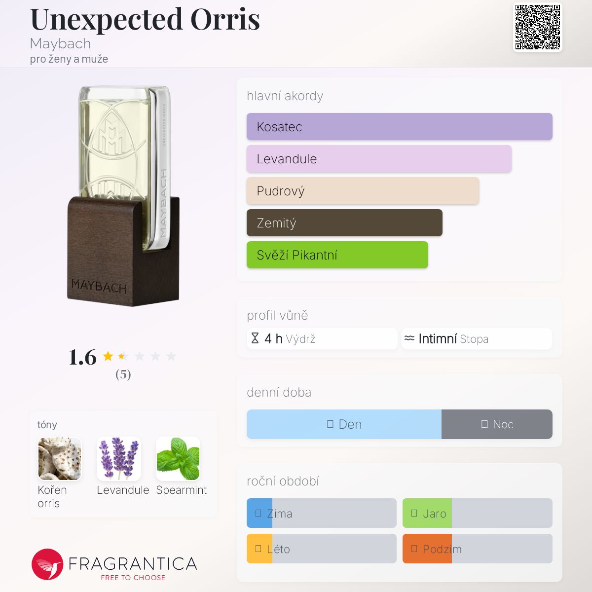 Unexpected Orris podle Maybach je vůně pro ženy a muže. Toto je nová vůně. Unexpected Orris byl/a uveden/a v roce 2024. "Nosem" za touto vůní je Anne Flipo.
