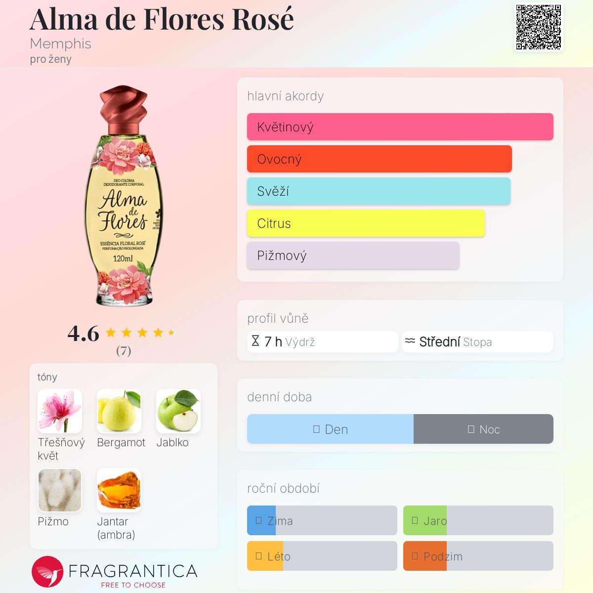 Alma de Flores Rosé podle Memphis je Floral vůně pro ženy. Alma de Flores Rosé byl/a uveden/a v roce 2022. Vrchní tóny jsou Bergamot a Jablko; střední tón jeTřešňový květ ; základní tóny jsou Pižmo a Jantar (ambra).