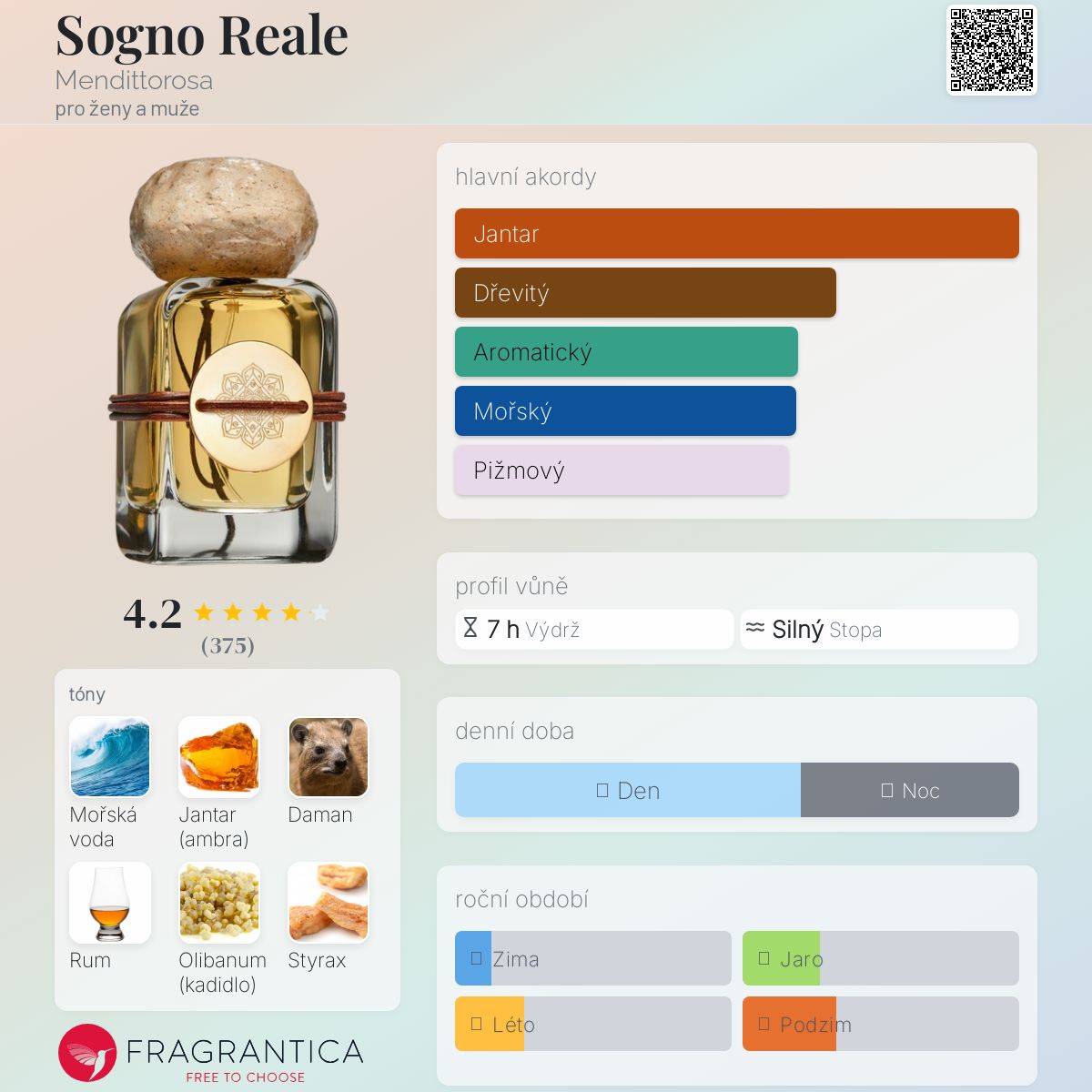 Sogno Reale podle Mendittorosa je Citrus Aromatic vůně pro ženy a muže. Sogno Reale byl/a uveden/a v roce 2015. "Nosem" za touto vůní je Amelie Bourgeois.