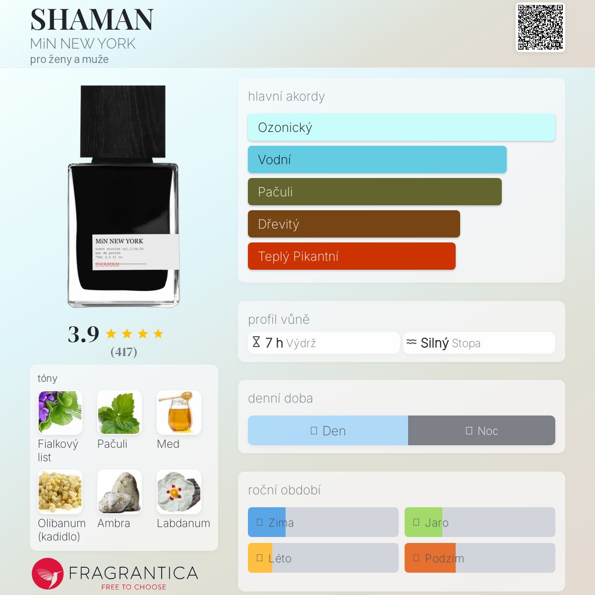 SHAMAN podle MiN NEW YORK je Orientální vůně pro ženy a muže. SHAMAN byl/a uveden/a v roce 2014. Vrchní tóny jsou Fialkový list, Kardamom a Mandarinka; střední tóny jsouKadidlo, Labdanum, Růže a Muškátový oříšek ; základní tóny jsou Pačuli, Med, Ambra a Styrax.