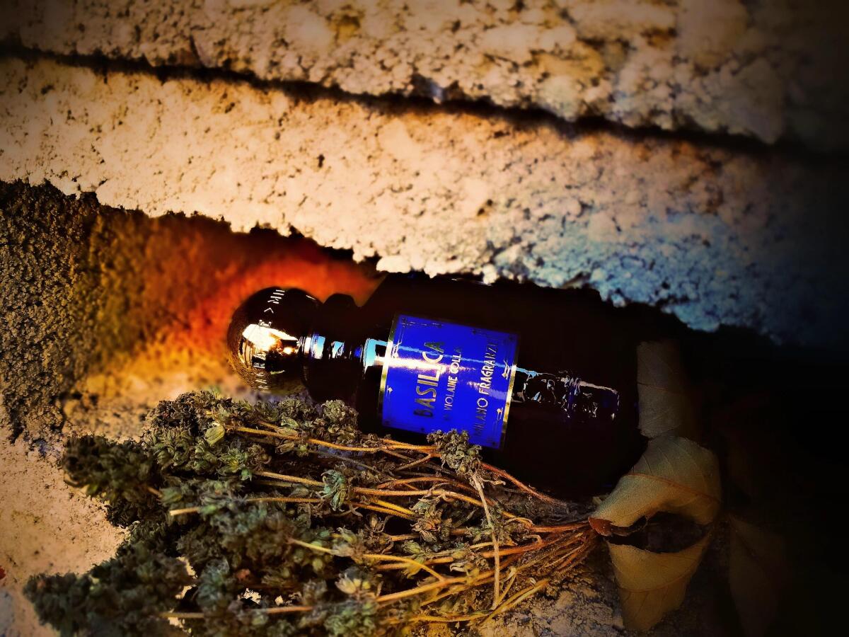 Basilica je velmi atmosférický parfém, který kombinuje vůni tymiánu rostoucího v horách, kostelních svící a parního mléka.