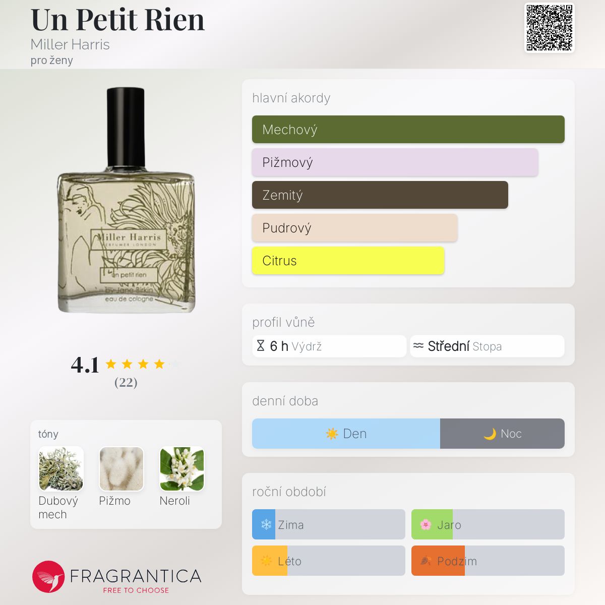 Un Petit Rien podle Miller Harris je Floral Woody Musk vůně pro ženy. Un Petit Rien byl/a uveden/a v roce 2010. "Nosem" za touto vůní je Lyn Harris.