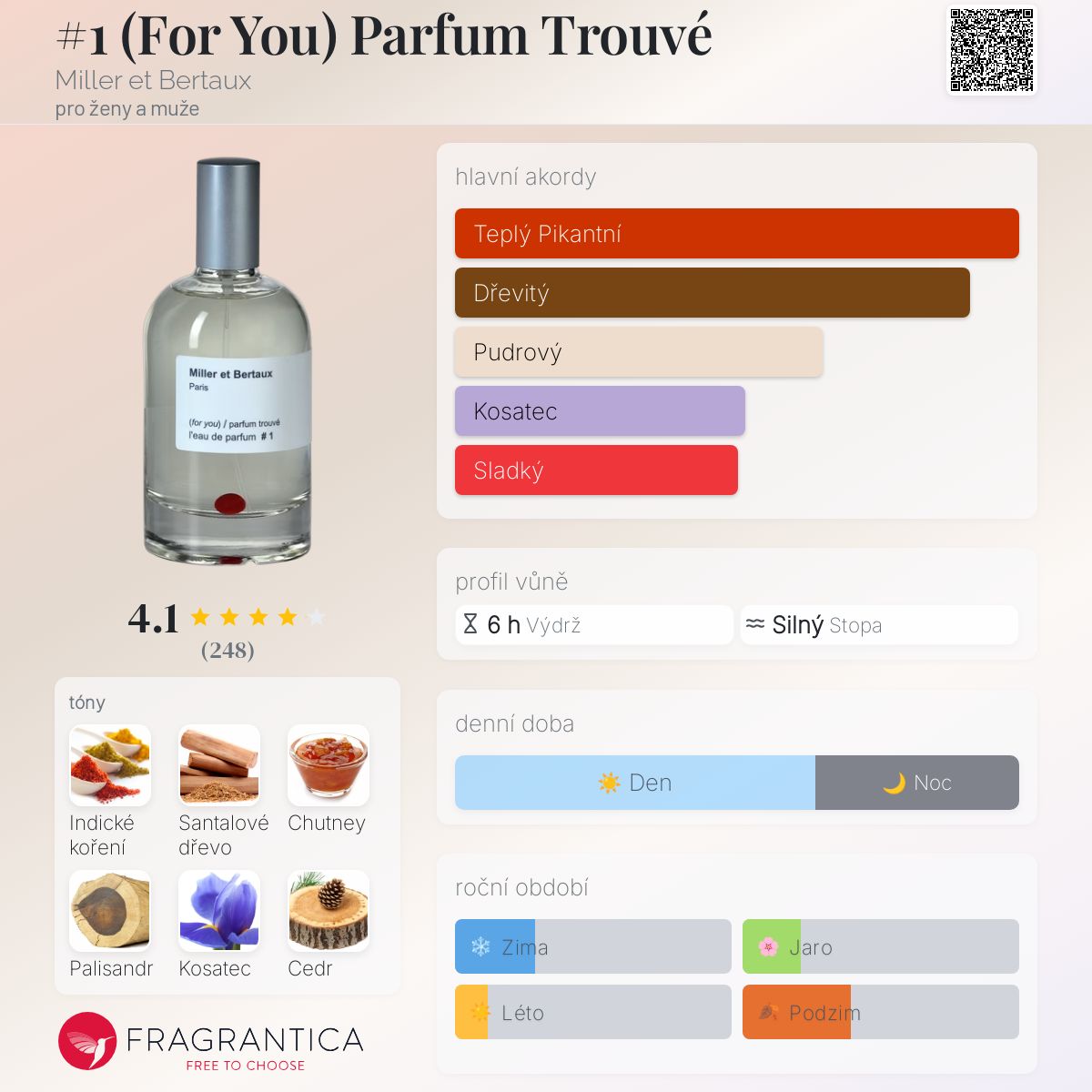 #1 (For You) Parfum Trouvé podle Miller et Bertaux je Floral Woody Musk vůně pro ženy a muže. #1 (For You) Parfum Trouvé byl/a uveden/a v roce 2006.