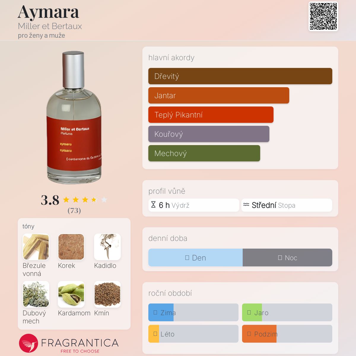 Aymara podle Miller et Bertaux je Woody Spicy vůně pro ženy a muže. Aymara byl/a uveden/a v roce 2022. "Nosem" za touto vůní je Bertrand Duchaufour.